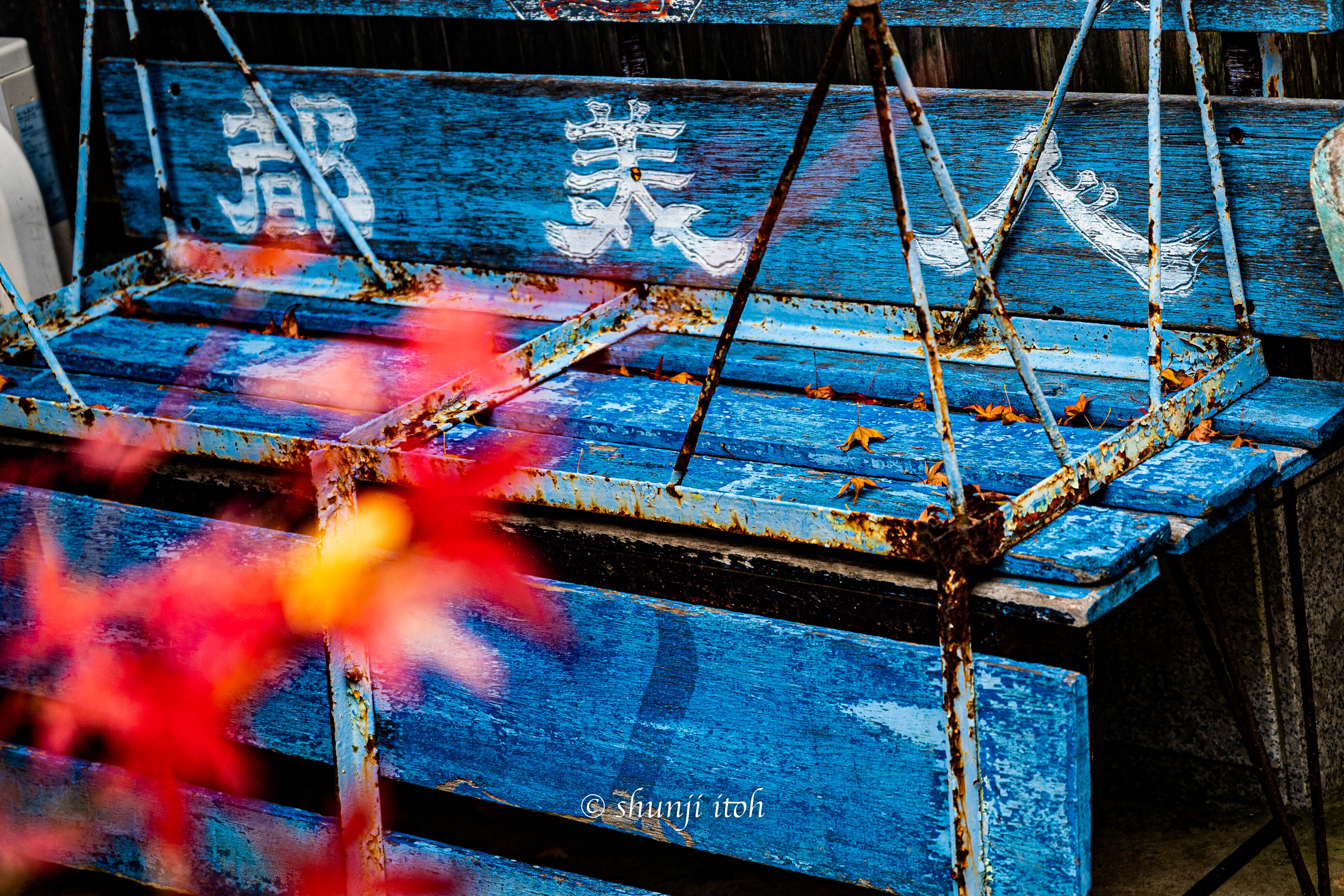 トップ > メンバーズ・フォト > 自然風景 > 都美人 シュン 2025/11/15 19:56 都美人 Z6+NIKKOR Z 24-70mm f/4 S 秋色チャレンジ 紅葉 いいね 共有する 共有する X facebook LINE リンクをコピー コメントする 1 件の返信 (新着順) ミュートしたユーザーの投稿です。 投稿を表示 lab_mee(Osamu NOGUCHI) 2025/11/19 23:48 日本酒?でしたっけ?? 一升瓶の入れ物と思いましたが、よく見たらベンチなんですね。 青いベンチが秋の空を、赤いもみじが都美人に惚れた心の色を感じさせますね。 蔵元にでもお出かけされて一杯楽しまれたのでしょうか。 と書いているうちに、あかいもみじの前ボケが、ちょっと嗜み、ごきげんなシュンさんを想像しました。 いいね 返信する ミュートしたユーザーの投稿です。 投稿を表示 シュン 2025/11/20 06:24 lab_mee(Osamu NOGUCHI) コメント、いいね、ありがとうございます。これは古いお寺の境内に撮影に行った時に撮りました。都美人と言うお酒は知ってましたので紅葉と絡めて撮りました。 因みに私は、下戸でお酒は殆ど飲めないです。(笑) いいね 返信する