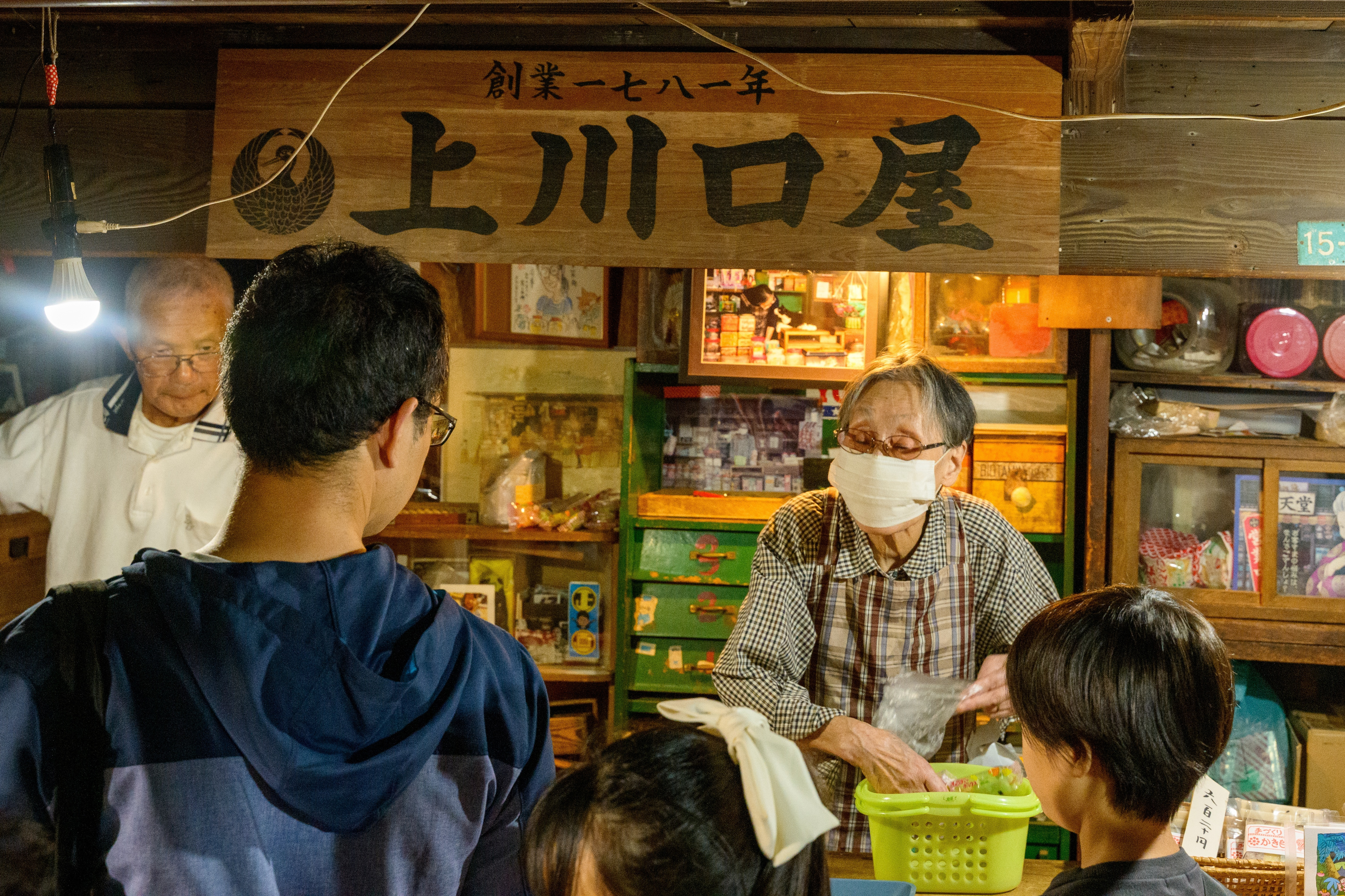雑司ヶ谷鬼子母神の境内にある、昭和の時代のままで有名な駄菓子屋さん「上川口屋」
