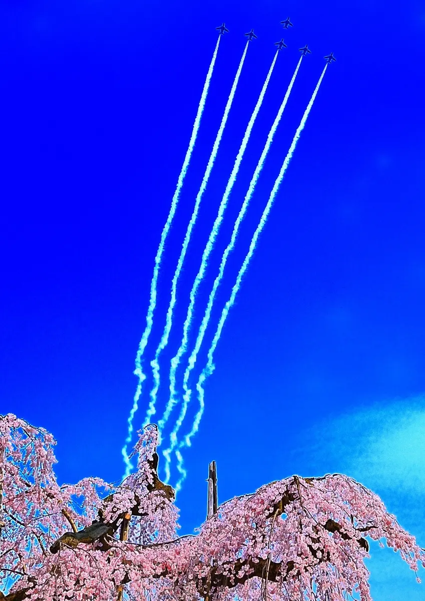 弘前観桜会100周年(2018年)ブルーインパルス祝賀飛行での一コマです。