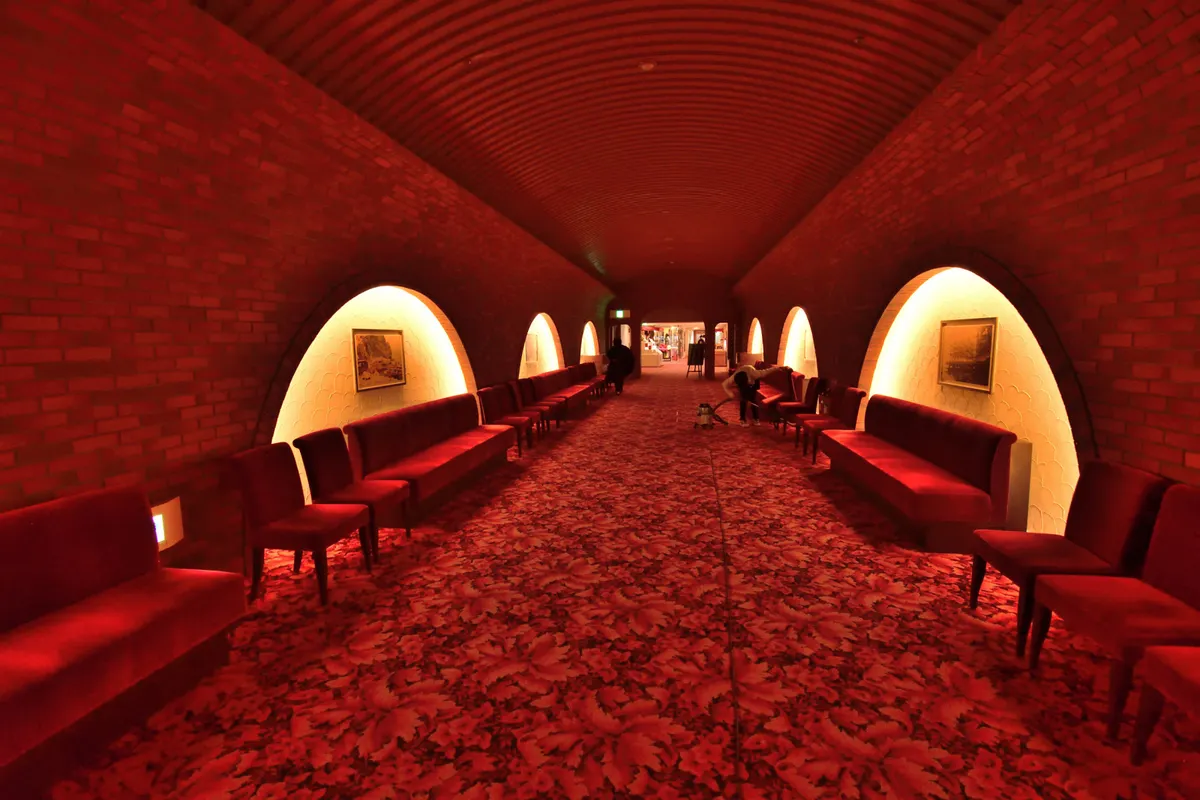 投稿を表示徹底した赤い色使いが素敵です。少し渋みのある赤が良いですね。ゆっくりと各絵画を鑑賞できるように沢山並べられたソファーも邪魔にならずいいですね。