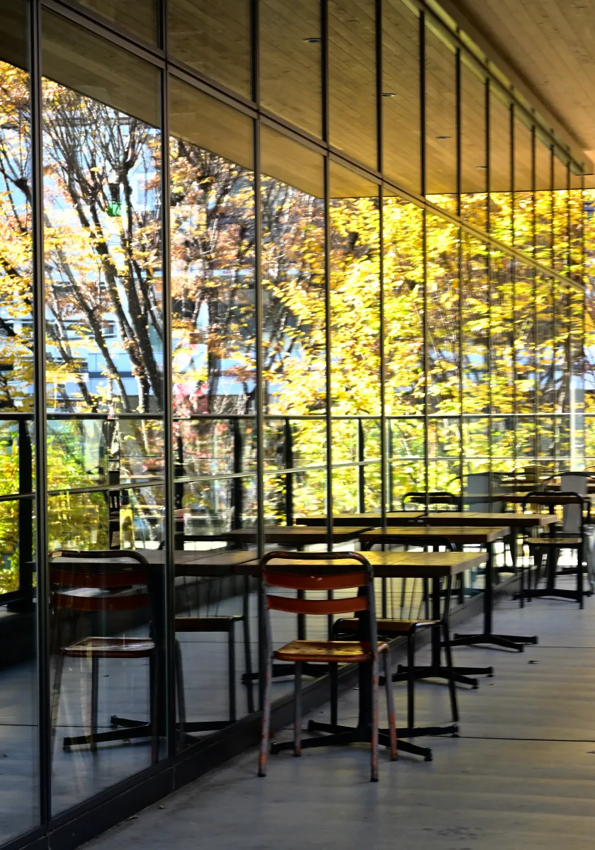 縦横混在の組み写真にすることで、その空間が上下左右にひろがる開放的な空間で、至る所に広がる秋色は、至る所で季節毎の心地よさに触れることが出来る場所、葉の香りが風とともに肌元で揺れるその豊かさを想像しました。