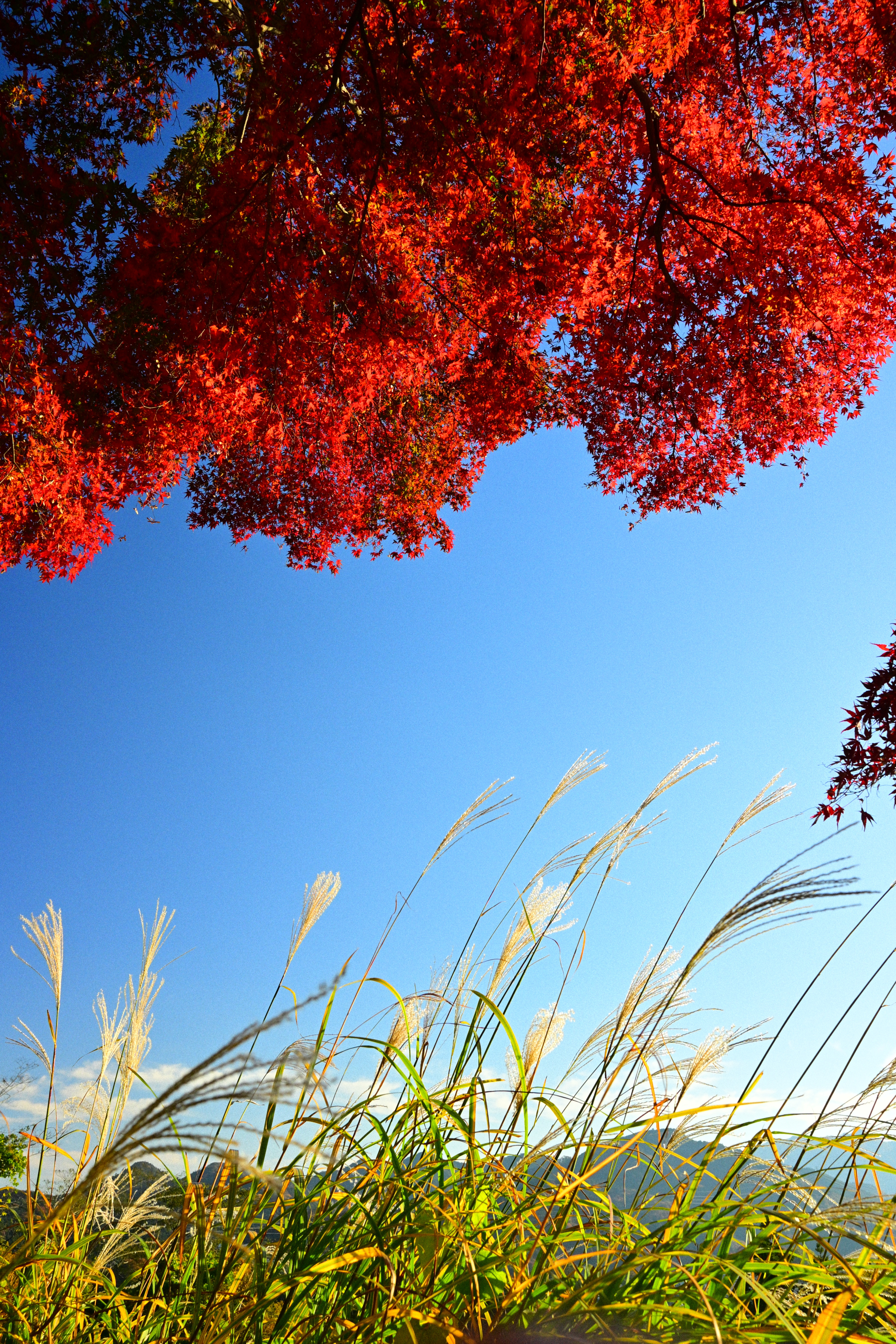 この1枚は数少ない赤い紅葉とススキちょっと間が空いてしまいましたが秋景らしいなと思って撮りました。