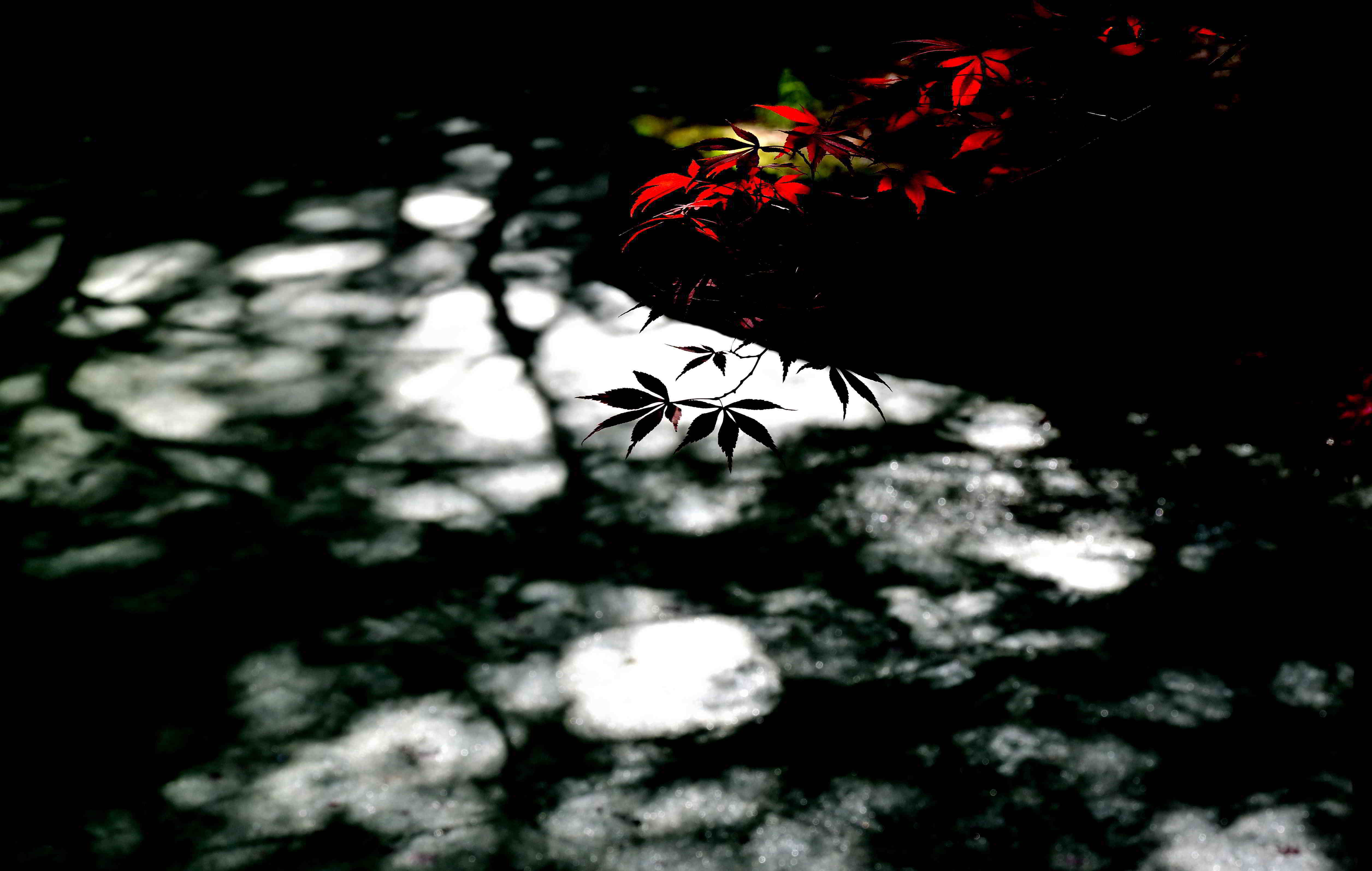 投稿を表示全体をモノトーン調にしたなかの紅葉、その下にある葉のシルエットが浮き上がってと、多層的な味わいがあっていいですね。コントラストを強くすると硬くなりがちな印象に、背景にある影の楕円形の曲線が適度に柔らかさをもたらしているんですね。とても勉強になりました。