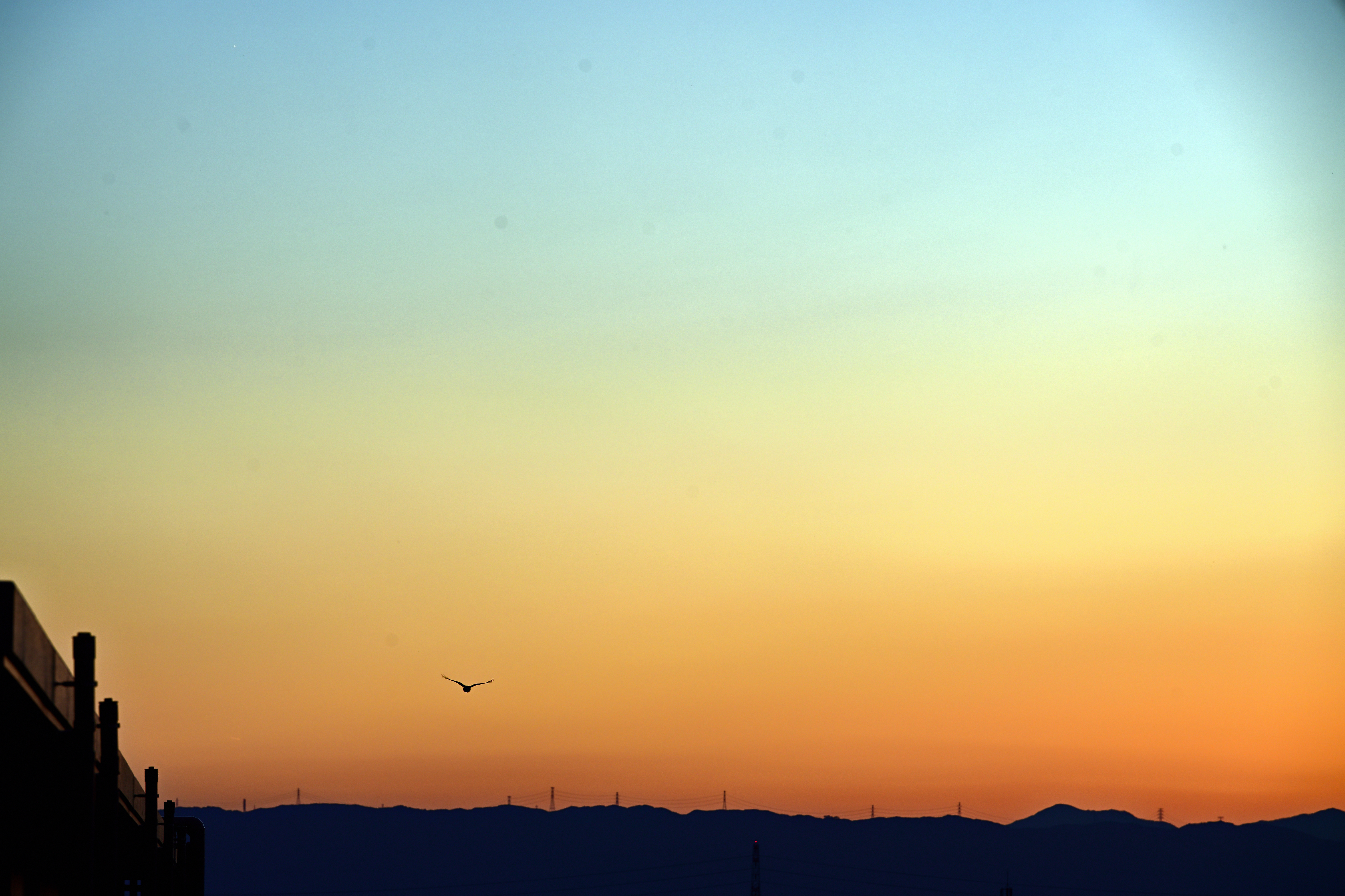 人の目だと、もうちょっと画角が狭く、そして人の脳は、夕焼け=「赤」と学習し、それが美しいとインプットされていると思いますので、赤い部分に視点がいってしまうと推察します。きっとその時の画角は広く見ているようで、実は赤い空の部分を注視をしていると思いますので、一般にいわれる50mmの画角より狭く、80mmぐらいの画角になっているのかなと思っています。