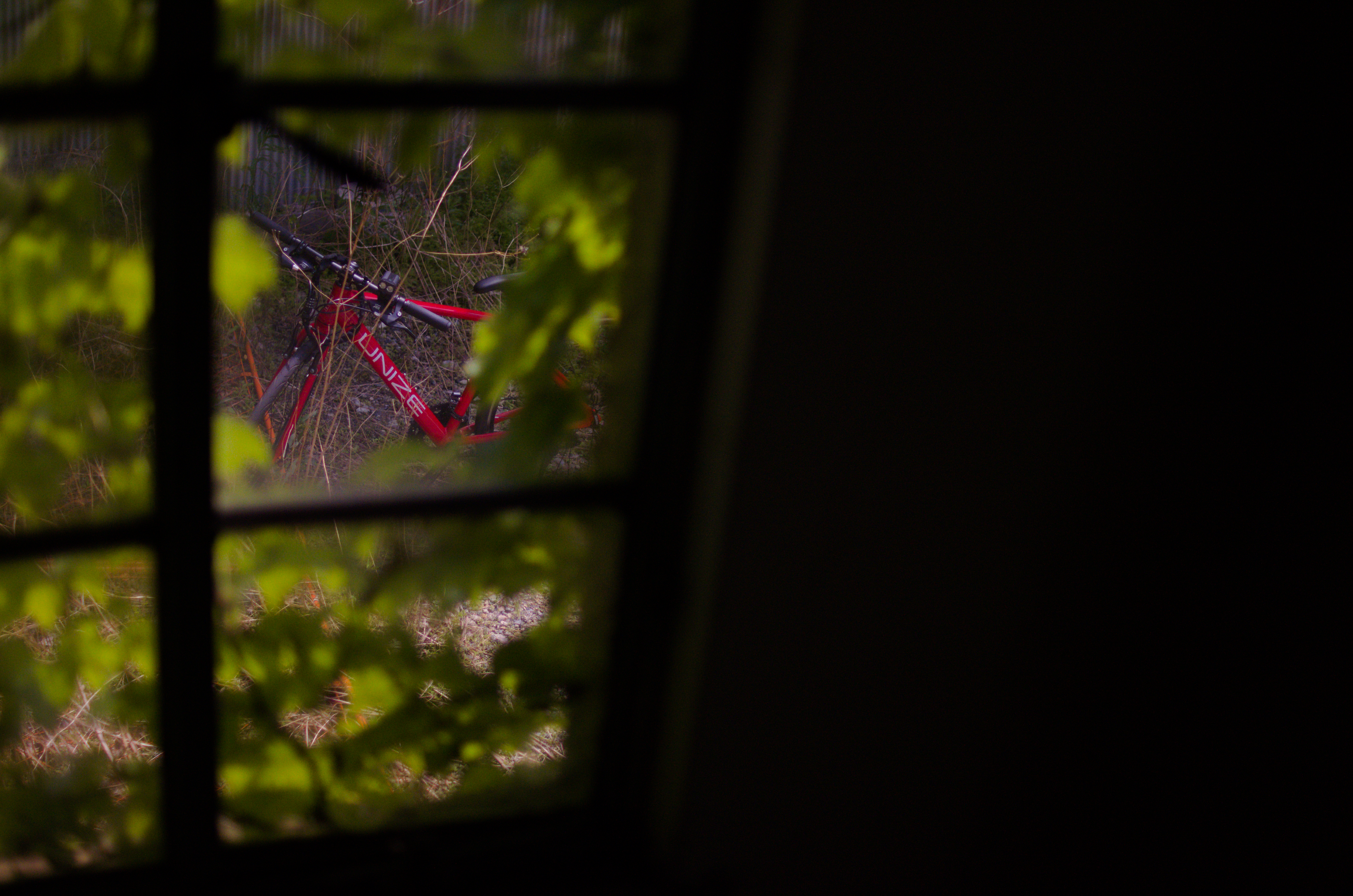 投稿を表示なんと大胆な構図でしょう、右半分強を黒で潰し否応なく左の窓の外の赤い物に目が行きます。ぱっと見たときは窓になにか虫が付いているのかと思いもよく見れば赤いクロスバイクの自転車とてもいい写真ですね。