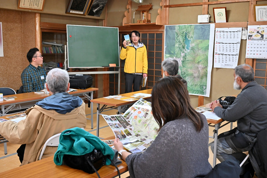 はじめに、下郷町観光協会の渡部様から大内宿の紹介と、同協会が運営する撮影スポットポータルサイト「フォトナビ下郷」について説明がありました。「フォトナビ下郷」には、下郷町のおすすめ撮影スポットや撮影旅行で役立つ、宿泊施設や食事、ショッピングなど下郷町をより楽しんでいただける旅情報も紹介しています。