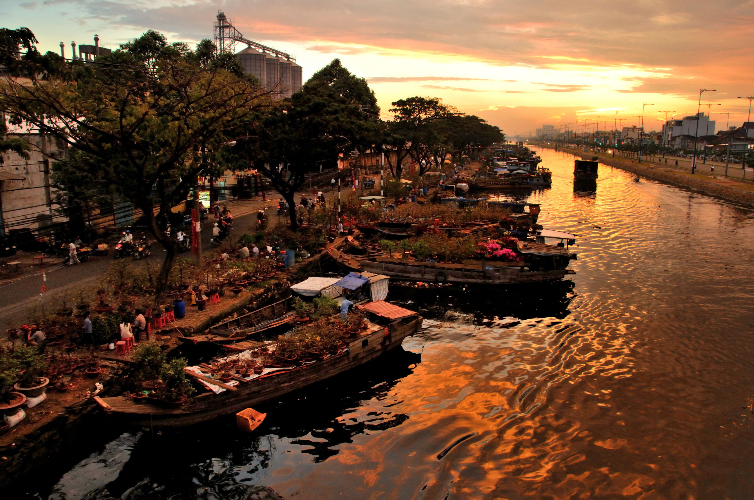 2012年の今日、1月17日にべトナム・ホーチミン市のサイゴン川につながる支流の川で撮影しました。沢山の花や盆栽を積んだ船が県外から到着しています。