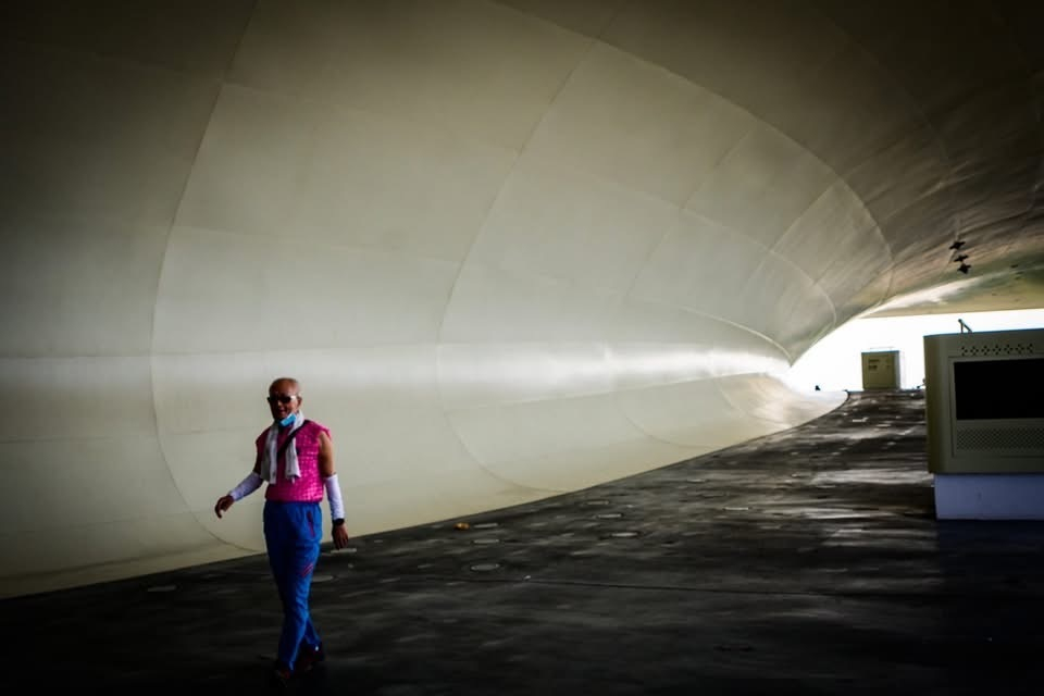 ①朝のウォーキング 高雄市、芸術センターアトリウム