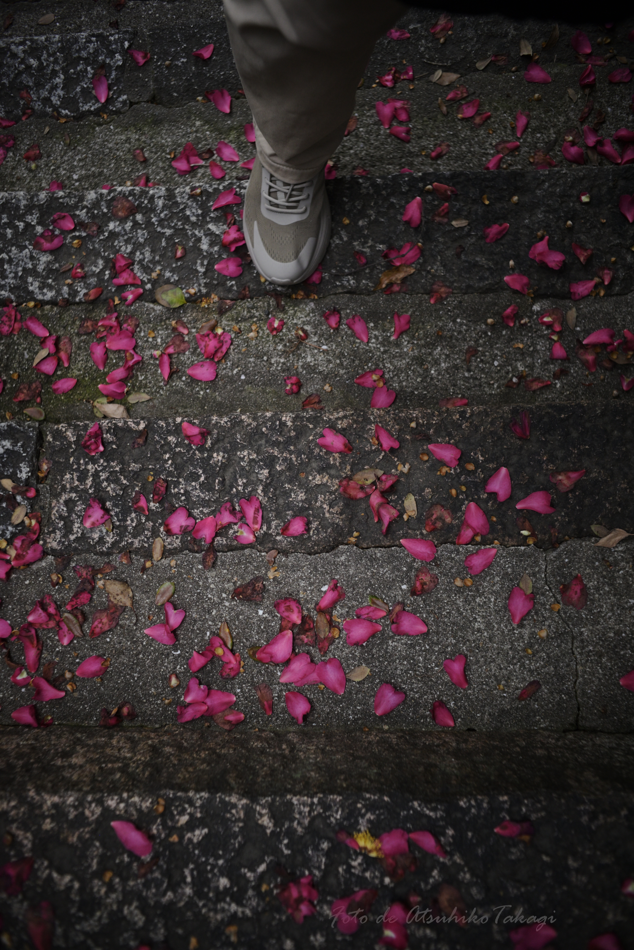 トップ > メンバーズ・フォト > その他 > 冬が終わるころ(大阪・安居神社) yumem 2026/03/04 08:45 冬が終わるころ(大阪・安居神社) 2/27、天満宮でもある安居神社へ梅花を求めて久々に参拝、お目当ての梅木は小さくて時期も過ぎてしまっていましたが、散った山茶花の花びらが参道の階段にきれいな文様を描いていました。 盛大な周辺光量落ちは、レンズによる自然なもので、ヴィネットコントロールは使っていません。 Z5 + MC W.ROKKOR-SG 28mm 1:3.5 + ピクコン:ニュートラルで撮影、NX Studioで調整、Affinity Photoでシグネチャー追加。 大阪 安居神社 山茶花 花びら ピクコン:ニュートラル オールドレンズ いいね 共有する 共有する X facebook LINE リンクをコピー コメントする 1 件の返信 (新着順) ミュートしたユーザーの投稿です。 投稿を表示 さおとめ 2026/03/06 17:04 周辺の光量が落ちているのもあいまって、私の中の冬の終わりってこんな感じかもって思ってしまいました。すごく響いたお写真です。 いいね 返信する ミュートしたユーザーの投稿です。 投稿を表示 yumem 2026/03/07 02:47 さおとめ コメントありがとうございます。 何かを感じ取っていただけるような作品作りを心掛けていますので、ご評価とてもうれしいです。^^ いいね 返信する