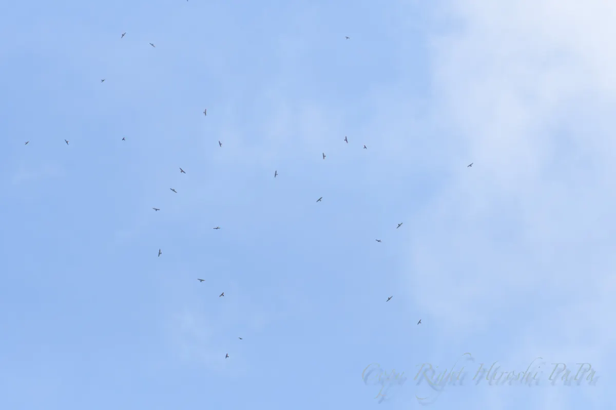 トップ > メンバーズ・フォト > 動物・ペット > 鷹柱 パパ 2025/09/28 09:10 鷹柱 鷹の渡り、鷹柱 2024年9月、奈良/大阪の県境付近に在る「五万人の森公園」で観測した鷹柱 40〜50羽以上の鷹が上昇気流に乗ってクルクルと円を描きながら上昇していく様は圧巻 (写真は鷹柱の一部しか写せていません) そろそろ、その季節 鷹の渡り 鷹柱 五万人の森公園 いいね 共有する 共有する X facebook LINE リンクをコピー コメントする 0 件の返信 (新着順)