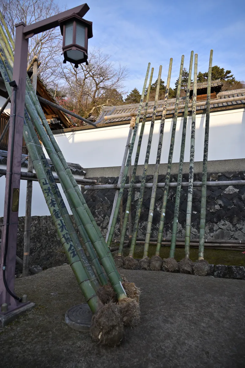 更に奥に進むと二月堂の入り口付近に、お水取り(正式名称:修二会・しゅにえ)で使う松明が並べてありました。デカっ!