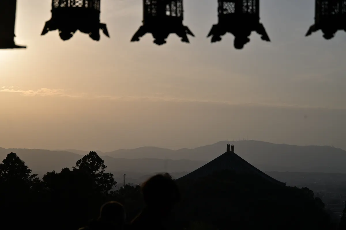 アイキャッチ画像は、二月堂に登った時に、遠く東大寺を背景に佇む観光客を撮ったものです。