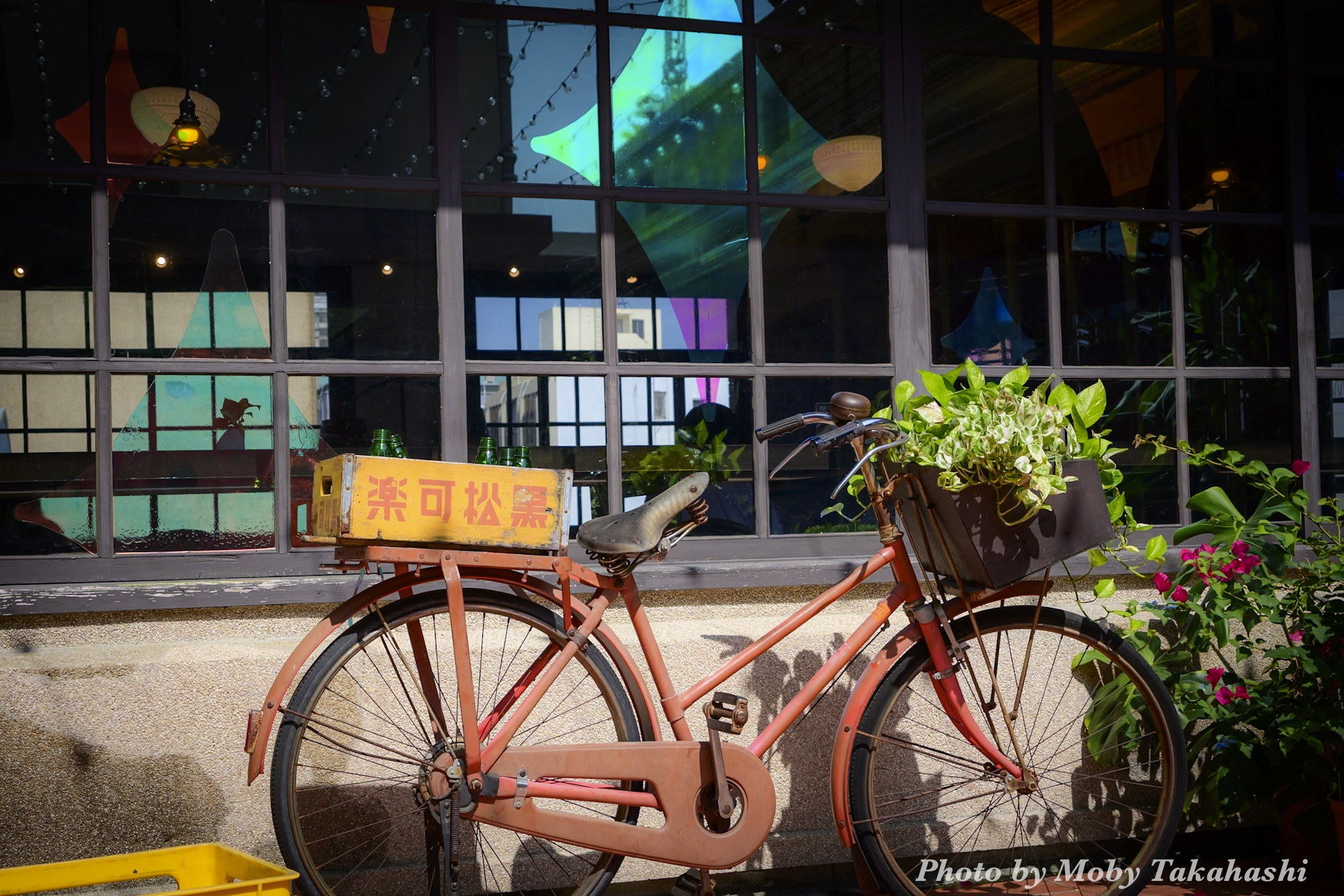 新しく出来た、豆花とかが美味しいHayashiCafeの外観。レトロ自転車の黒松可楽と言うのは、台湾コーラのブランドです。