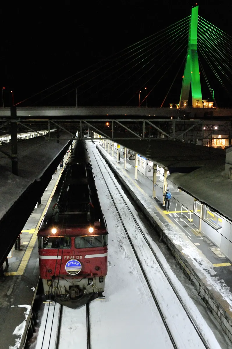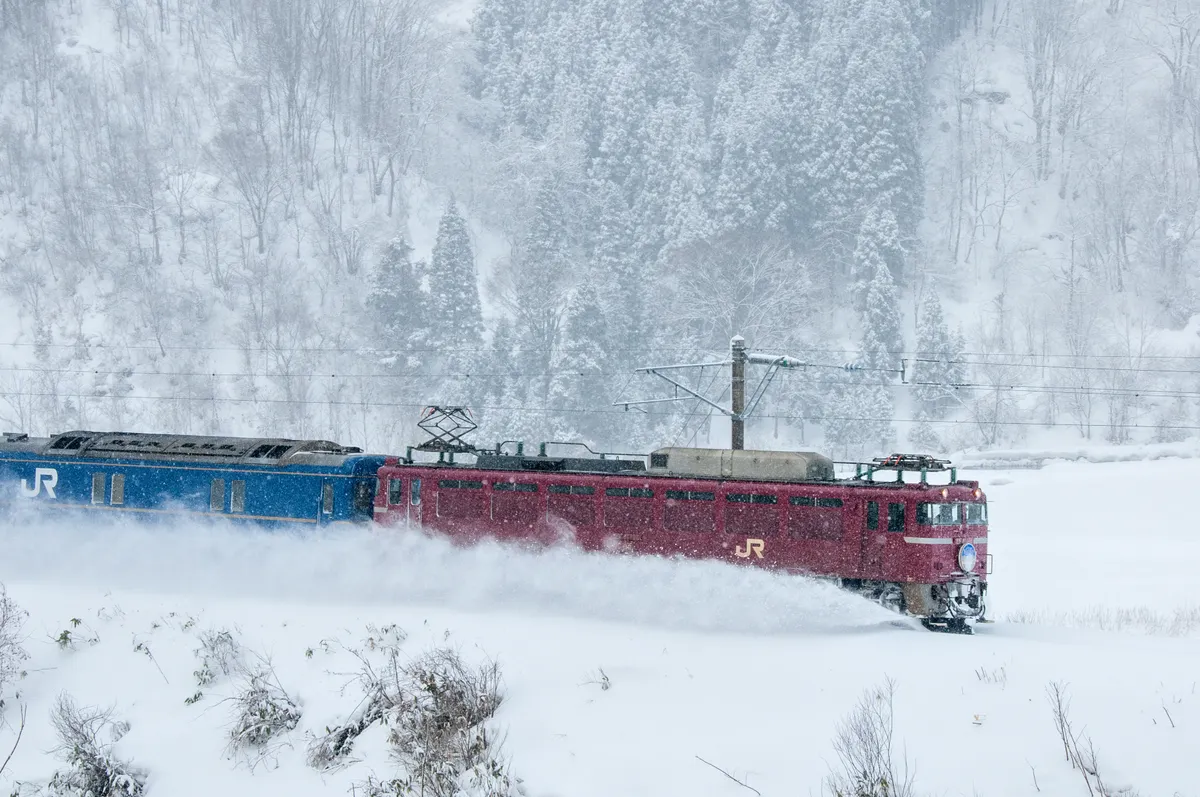 トップ > メンバーズ・フォト > 乗り物(鉄道、飛行機など) > 雪を駆ける寝台特急「あけぼの」(過去作6枚組) TOSHI 2026/01/30 18:58 雪を駆ける寝台特急「あけぼの」(過去作6枚組) JRからブルートレインが無くなってから久しいですが、2014年2月に寝台特急「あけぼの」を撮りに雪の青森まで行って、帰りにA寝台個室で帰って来た過去作をUPします。因みに往路は東北新幹線の東京~新青森が3時間16分で、復路は奥羽本線の秋田経由で青森~上野が12時間30分もかかりました。 いいね 共有する 共有する X facebook LINE リンクをコピー コメントする 1 件の返信 (新着順) ミュートしたユーザーの投稿です。 投稿を表示 フォトマック 2026/01/30 21:46 TOSHI 吹雪く中雪煙まきあげるEF、凄い迫力です。厳しい冬の奥羽線が目に浮かびます。貴重なショットご披露いただきありがとうございました。 いいね 返信する ミュートしたユーザーの投稿です。 投稿を表示 TOSHI 2026/01/30 22:03 フォトマック 1枚目と2枚目は矢立峠(白沢-陣場)を越えるEF81で、大雪が降ると遅延は当たり前。今週は倒木や除雪で運休が続いているようです。雪ダルマになりながら列車を待っていたのが、寒い思い出です。 いいね 返信する