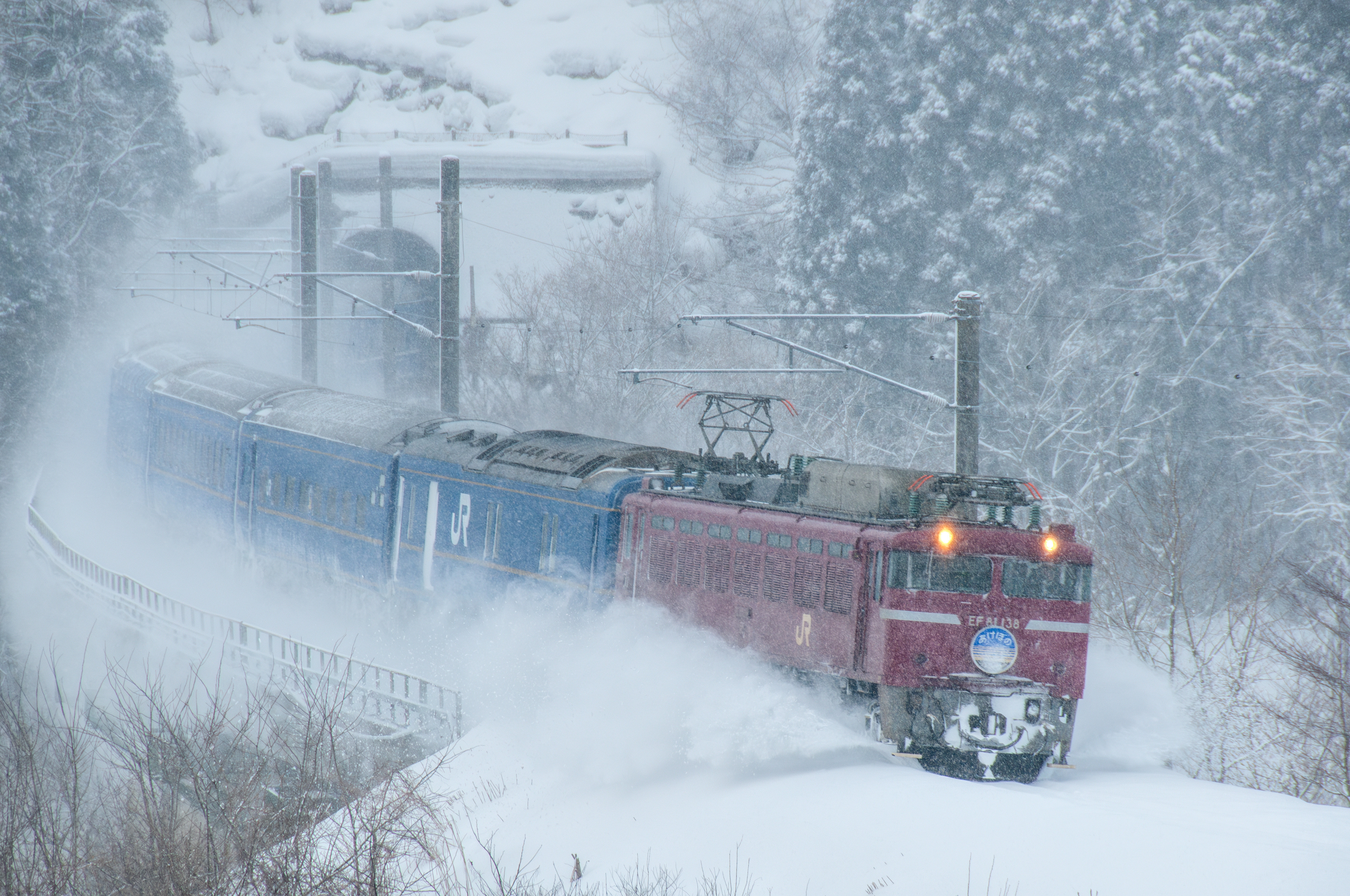 投稿を表示吹雪く中雪煙まきあげるEF、凄い迫力です。厳しい冬の奥羽線が目に浮かびます。貴重なショットご披露いただきありがとうございました。