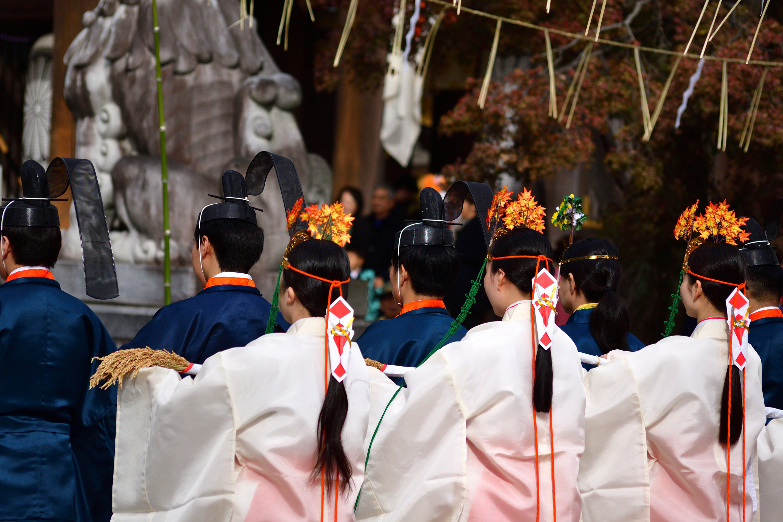 トップ > メンバーズ・フォト > その他 > 「秋色チャレンジ」巫女さんの秋 Finder 2025/11/23 23:47 「秋色チャレンジ」巫女さんの秋 今日は、寒川神社の「新嘗祭」に行ってきました。 同祭は、五穀豊穣と産業振興を願い、また、秋の豊かな実りに感謝する祭典。崇敬者や地域の生産者らが丹精込めて作った白酒や新米、野菜、果物などが神前に奉納されます。 巫女さんの頭飾りには、もみじの紅葉がありました。^^ 秋色チャレンジ 寒川神社 新嘗祭 いいね 共有する 共有する X facebook LINE リンクをコピー コメントする 3 件の返信 (新着順) ミュートしたユーザーの投稿です。 投稿を表示 lab_mee(Osamu NOGUCHI) 2025/11/24 16:32 命を育て、頂くことの大切さ。それが当たり前でないことを奉る。 いただきますを唱える重みが、新嘗祭で意識づきますね。 Finderさん。いつもありがとうございます。 色を通じて、コメントを拝見して、深く多様な気づきがありました。ありがとうございます😊 いいね 返信する ミュートしたユーザーの投稿です。 投稿を表示 yumem 2025/11/24 07:32 新嘗祭は「にいなめのまつり」と読むそうですね。「しんじょうさい」でも問題ないようですが。 今年は紅葉や秋の彩りを撮るのに夢中になっていて、すっかり失念しておりました。^^; いいね 返信する ミュートしたユーザーの投稿です。 投稿を表示 Finder 2025/11/24 15:05 yumem yumenさん。「いいね」とコメントありがとうございます。この日は皇室をはじめ全国の神社で催しされていると思います。年に1度の機会ですので来年は何かしら参加出来ると良いですね。^^ 私は、今回、ある事で招待状を頂き、お祓いを受け、本殿で雅楽の流れる儀式を見る事が出来ました、巫女さんの舞もとても優雅でしたよ。中で写真を撮れなかったのがちょっと残念です。^^ いいね 返信する ミュートしたユーザーの投稿です。 投稿を表示 Hachiro 2025/11/24 07:22 五穀豊穣を祝い、感謝しての秋祭り。髪飾りの紅葉。現代社会は感謝が薄くなり、ひとへの悪口が目立って醜くなりましたが、美しいものへの表現は変わりませんね。 いいね 返信する ミュートしたユーザーの投稿です。 投稿を表示 Finder 2025/11/24 15:00 Hachiro Hachiroさん。「いいね」とコメントありがとうございます。食べる事が精いっぱいだった時代も殆ど無くなり、当たり前、グルメにこだわる人も沢山いる時代、自然に感謝し五穀豊穣を願う気持ちを忘れたらいけませんね。^^ いいね 返信する