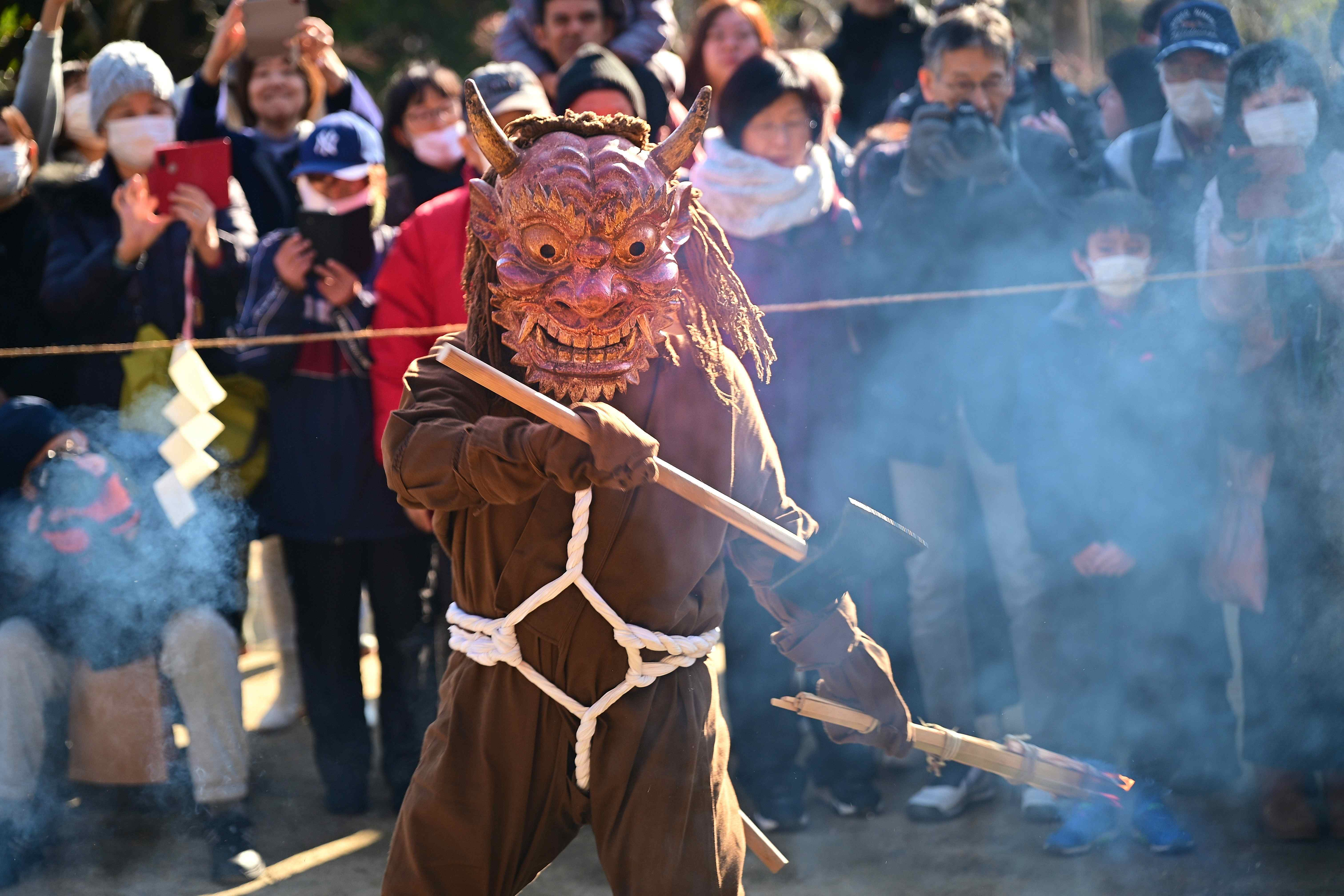 トップ > メンバーズ・フォト > 街風景 > 鬼踊り Hachiro 2026/01/24 05:28 鬼踊り 屋外で観客に良く見えるように踊ってくれる鬼もあります。性海寺の鬼は、大きないい彫り物の面相の鬼で気に入っておりますし、毎年観客も多いです。 いいね 共有する 共有する X facebook LINE リンクをコピー コメントする 1 件の返信 (新着順) ミュートしたユーザーの投稿です。 投稿を表示 Finder 2026/01/24 13:41 こんなリアルなお面をかぶった姿、斧まで持って、怖い怖い!!大迫力です。近寄らないで~!!でも写真は撮らせてね。って感じですね。^^ いいね 返信する ミュートしたユーザーの投稿です。 投稿を表示 Hachiro 2026/01/24 13:46 Finder 観客席と対面する小高い土手からの撮影で、叱られたら下りようと思って1枚でもと厚かましく撮影。結局、皆様誰の注意もなくおおらかな所で全部撮影しました。観客をぼかす絞りに注意しただけです。至る所を撮影しましたが、このお面はいいお面でしたね。 いいね 返信する