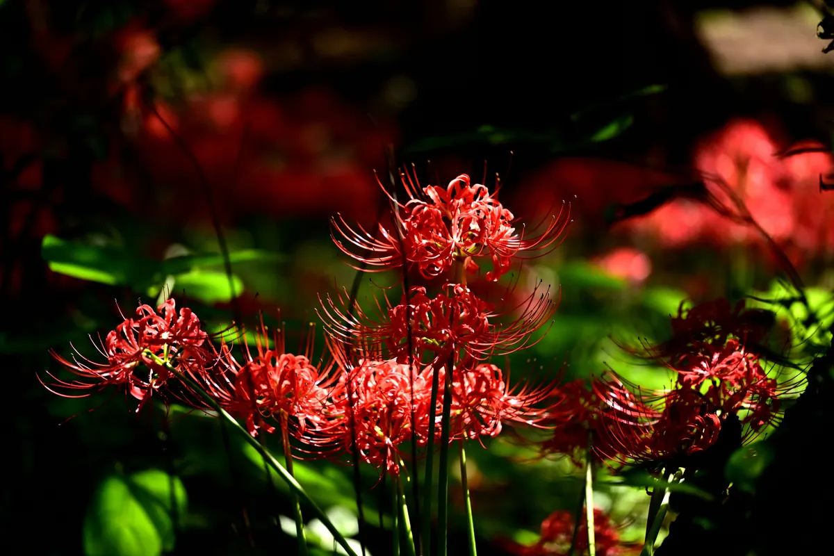 投稿を表示9月末でも綺麗に咲いていたのですね~。確かにこの頃の彼岸花は日陰の場所には、元気な花が咲いていて日当たりの良い場所では完全に萎れてしまっていました。長く美しい姿を見せてくれた彼岸花に感謝です。日陰から日の当たる色彩の変化がとても綺麗ですね。^^