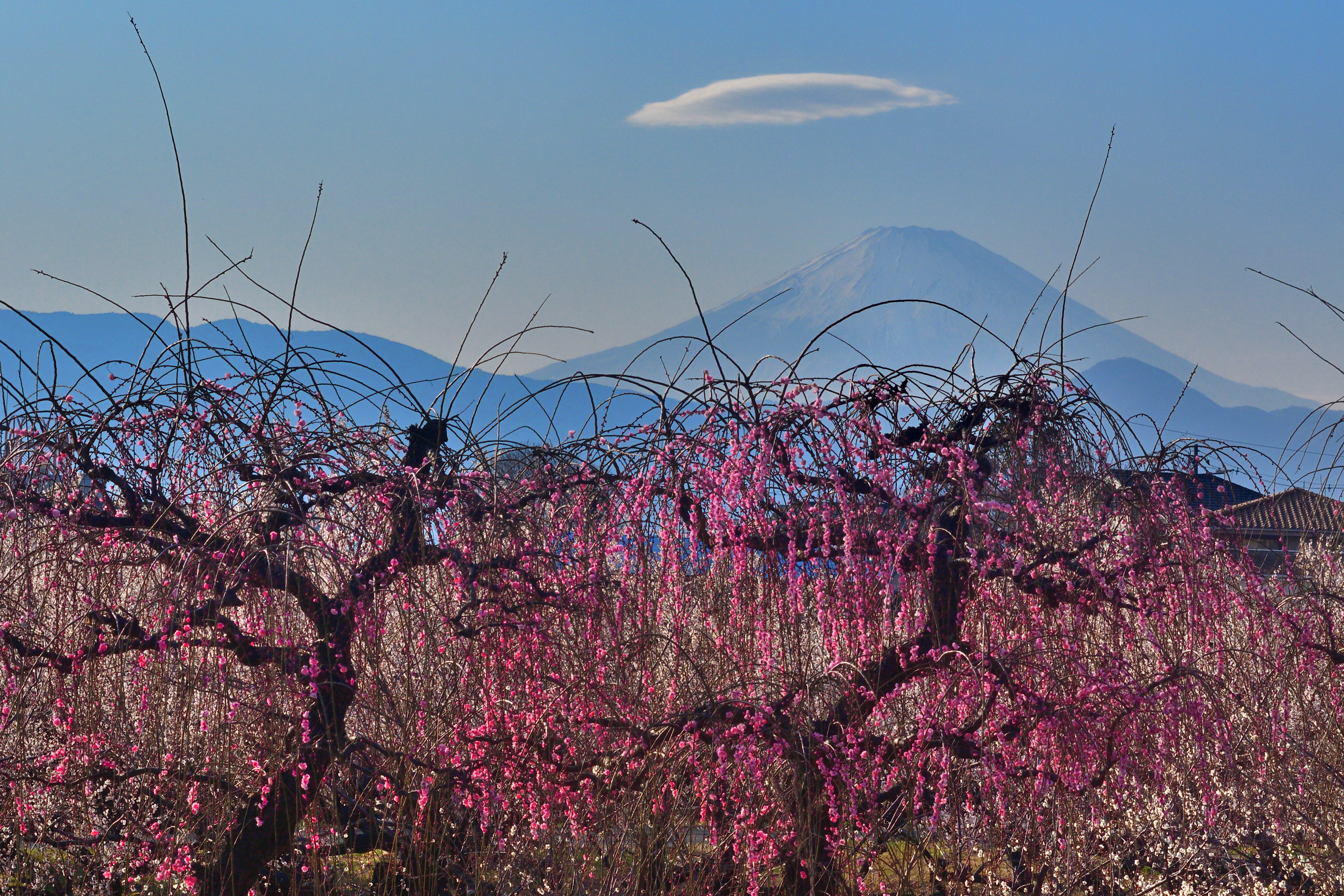 投稿を表示レンズ雲を頂いた富士も珍しいし、ふもとの紅梅との対比も素敵です。1.111件の投稿、お疲れさまでした。