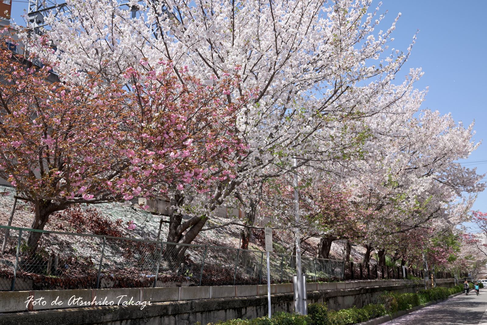 説明の看板によりますと、この先にある日切地蔵尊移転20年を記念して、近くの町会が平成18年に南海電鉄から線路沿いの土地(土手)を百五十メートル借用して植樹したそうです。
