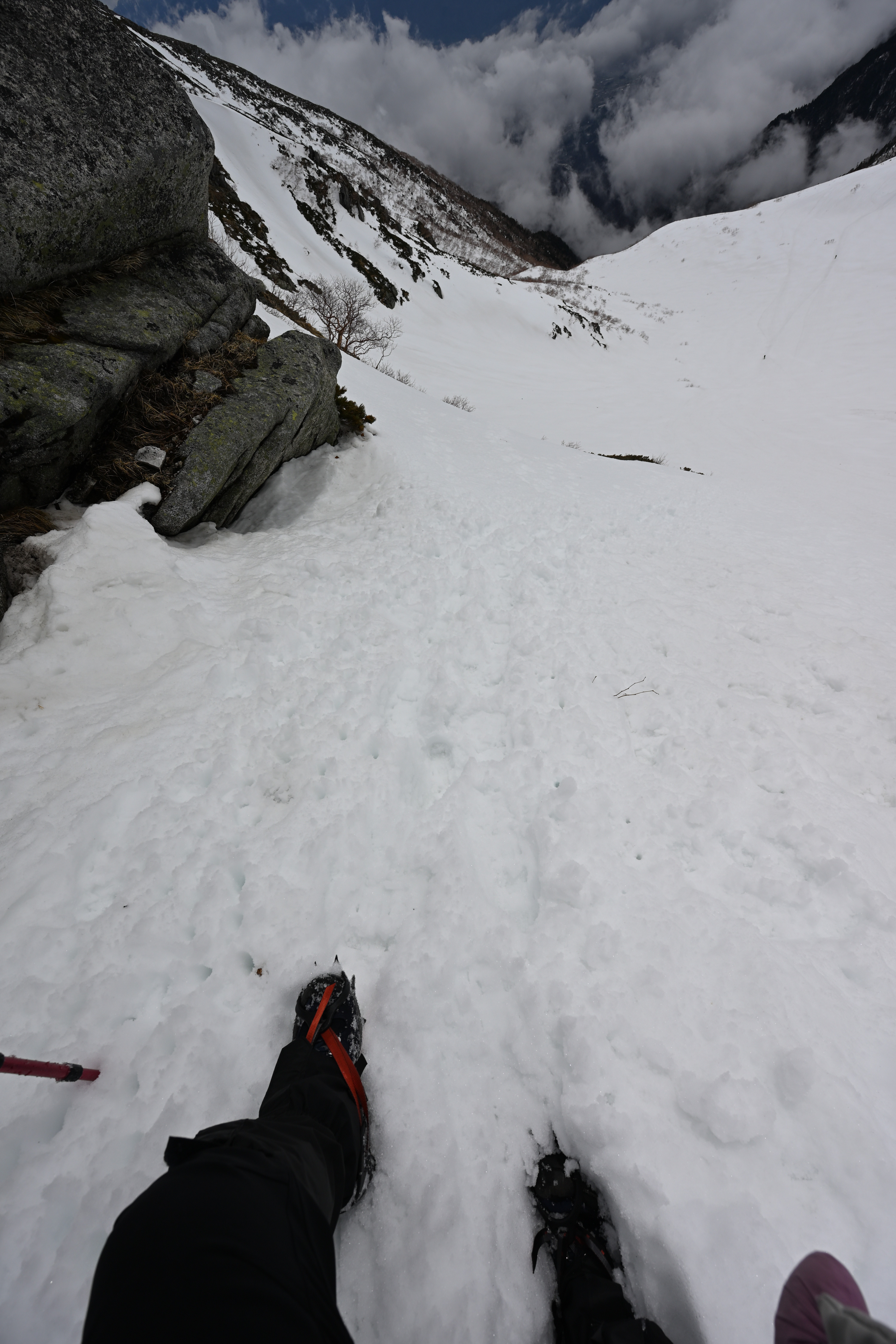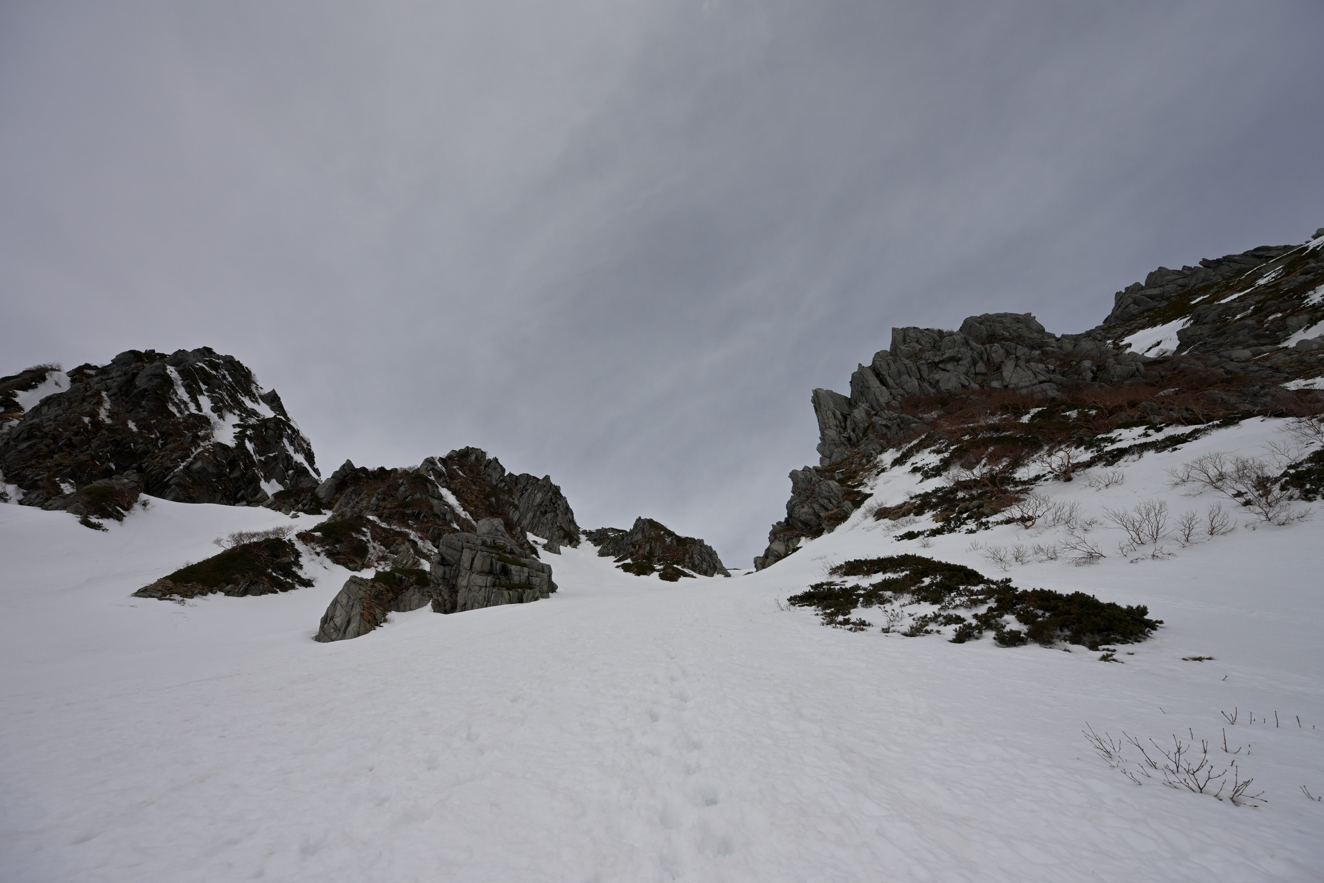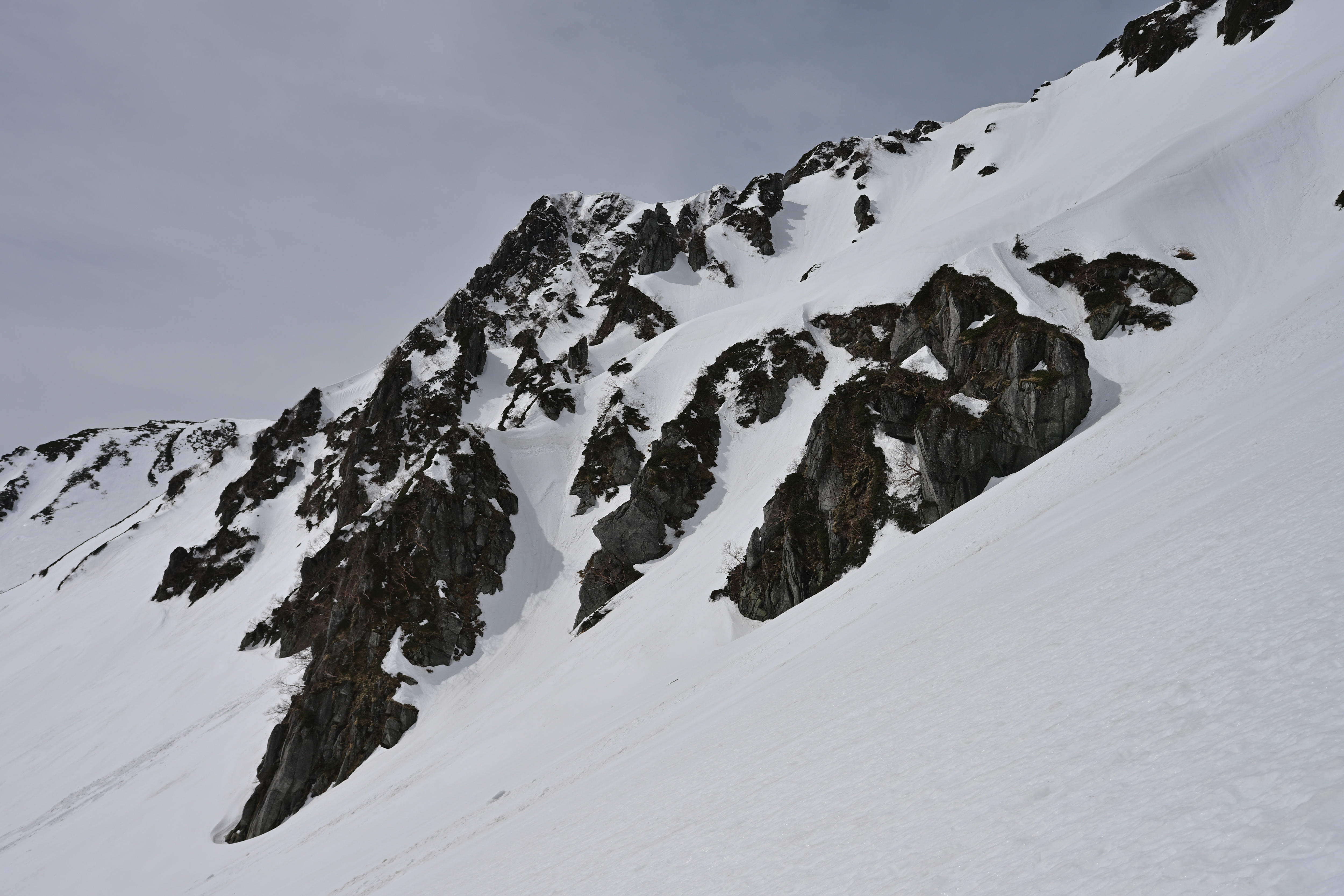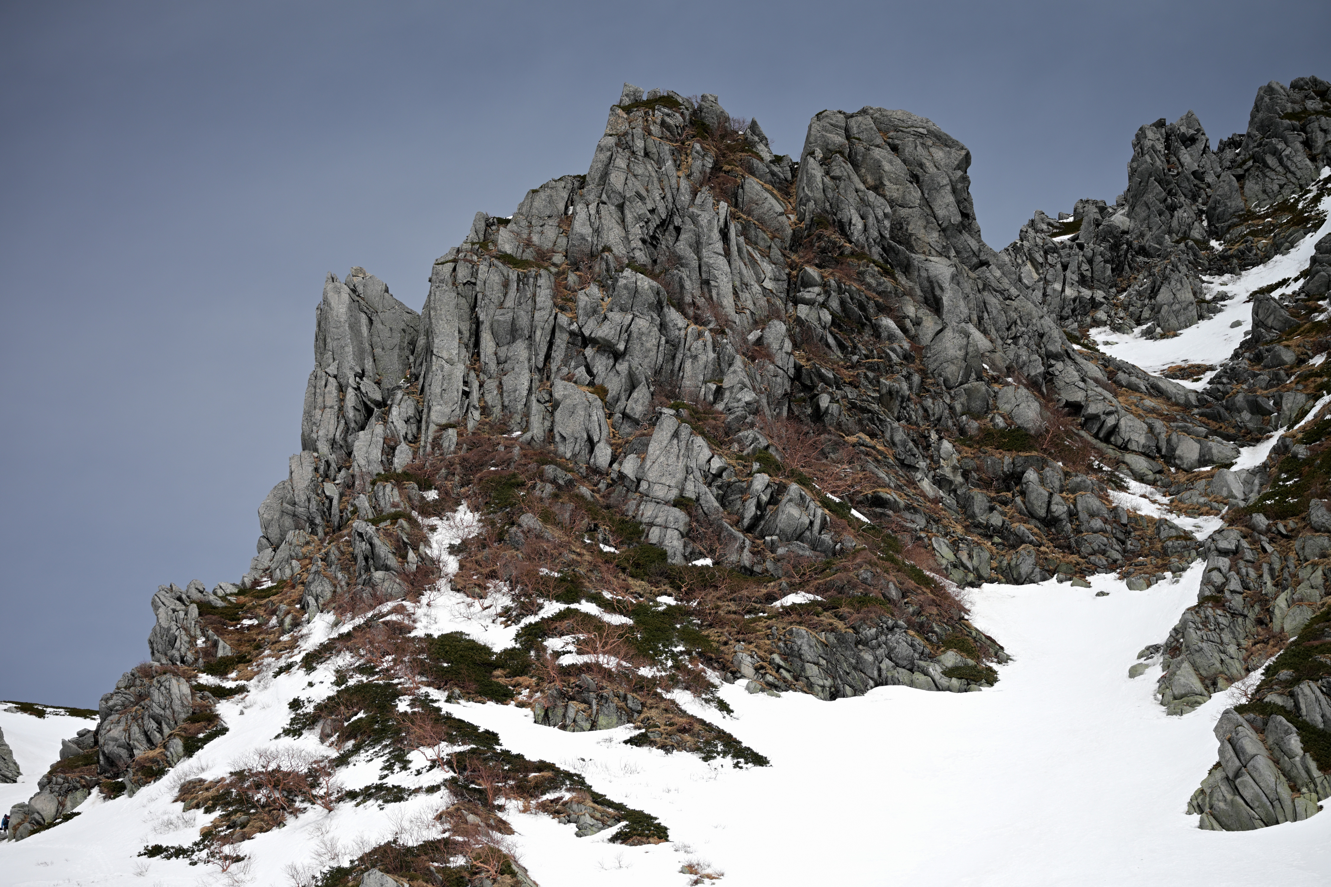 残雪の中にコントラストの豊かな岩塊が素晴らしい風景です😊