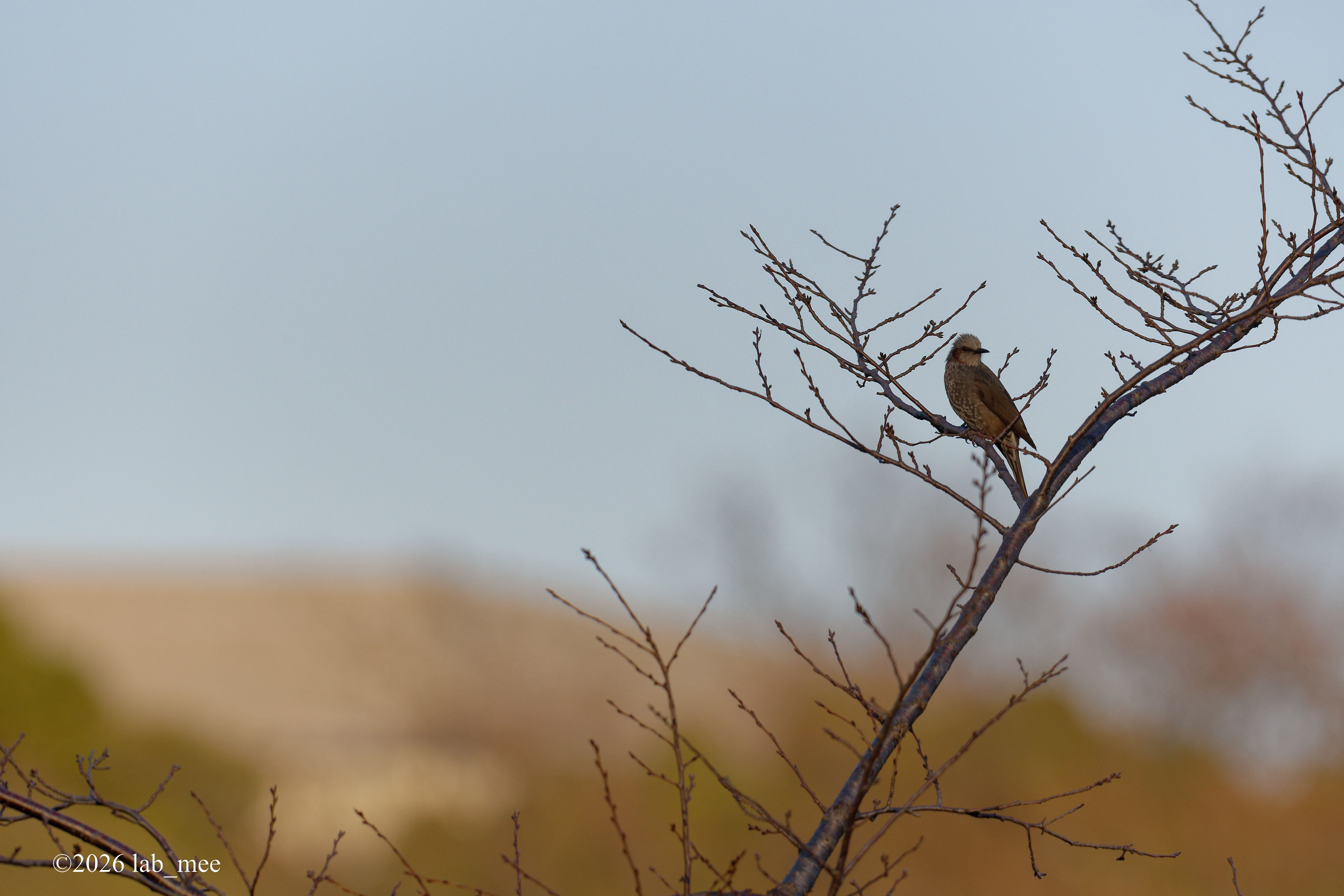 投稿を表示晩秋の頃には、熟した柿を啄む姿が印象的なヒヨドリさん。今は、何を食べているのかな~。今は、ちょっと寂しそう。^^