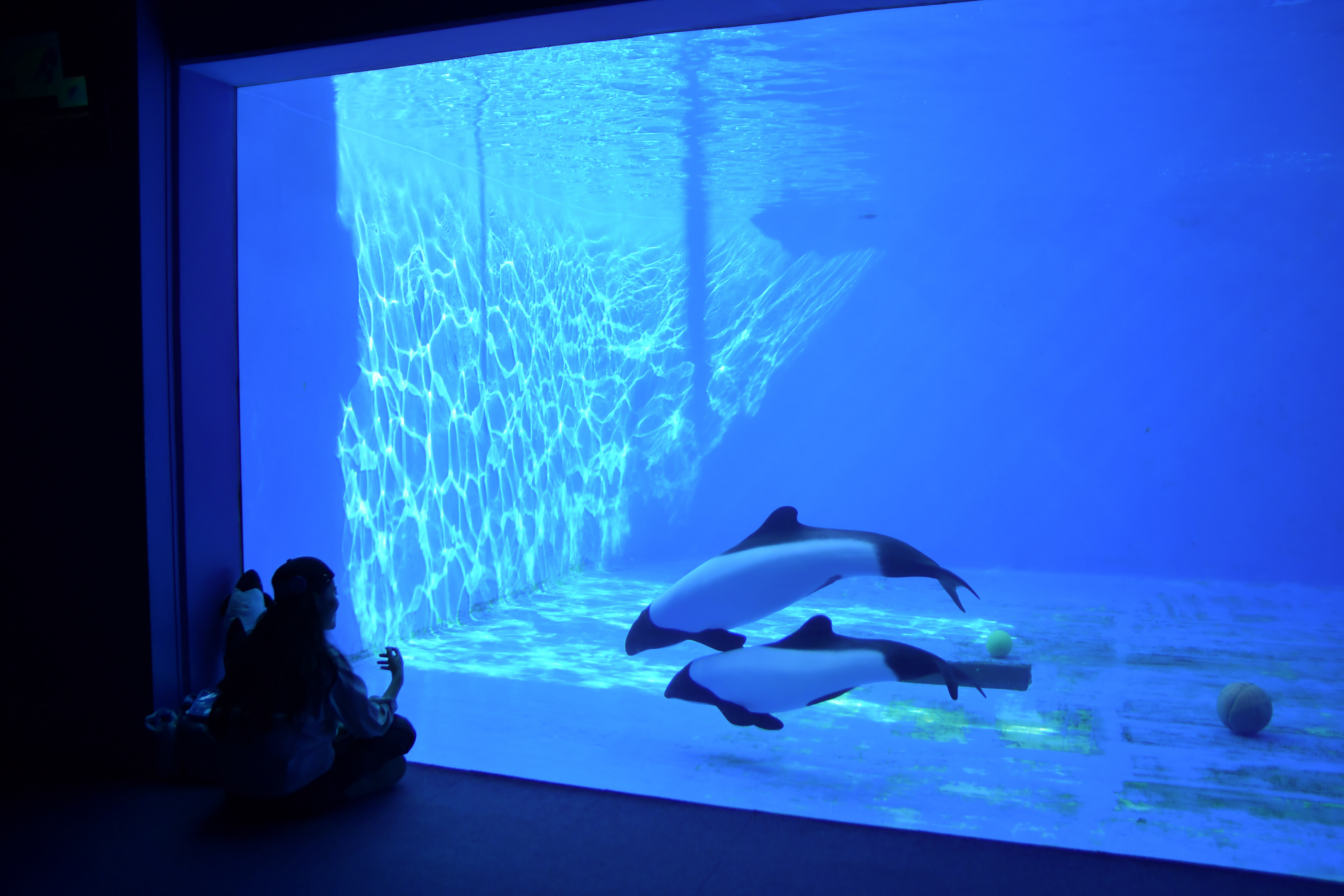 イルカが大好きなんだろうなぁと思えるおねぇさん、水槽の前に座り込みずっとイルカを眺めていらっしゃいました。