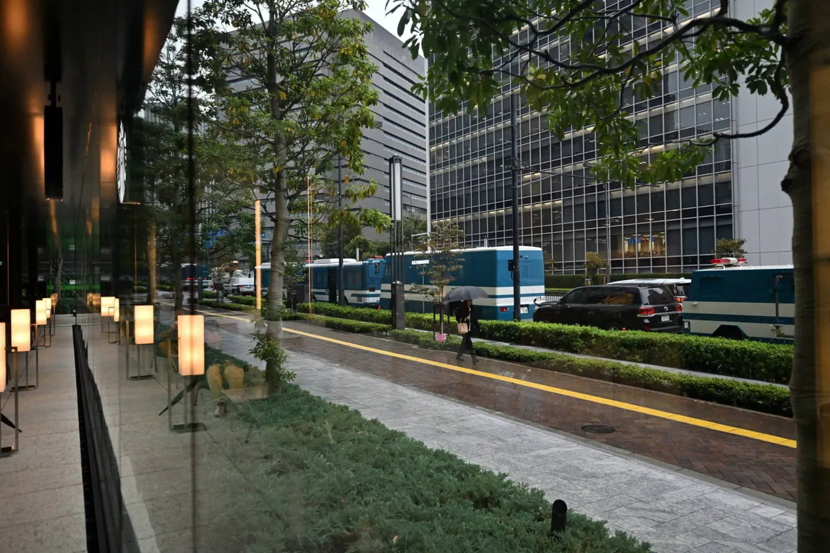 新虎通りは機動隊の警備が始まりました。