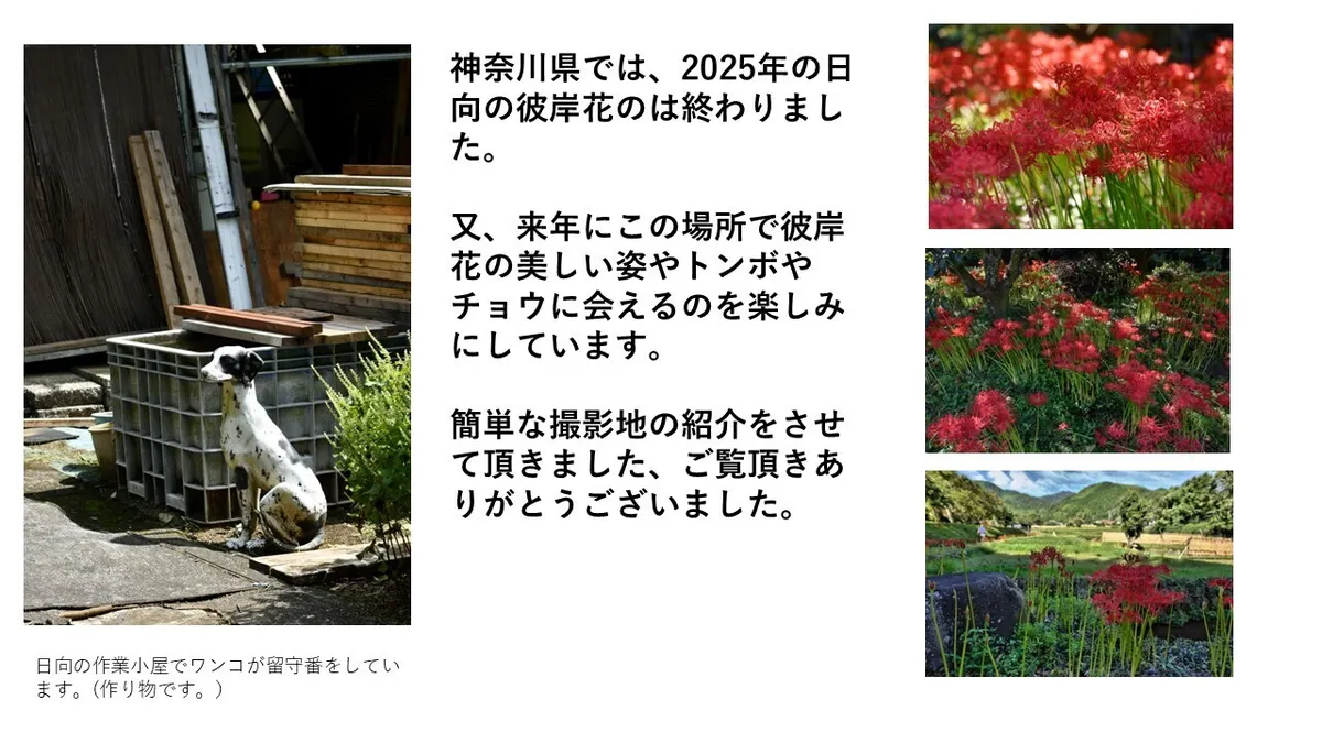 投稿を表示日向の彼岸花撮影地の丁寧に、また見所を上手にまとめられておられ、感心するばかりです。