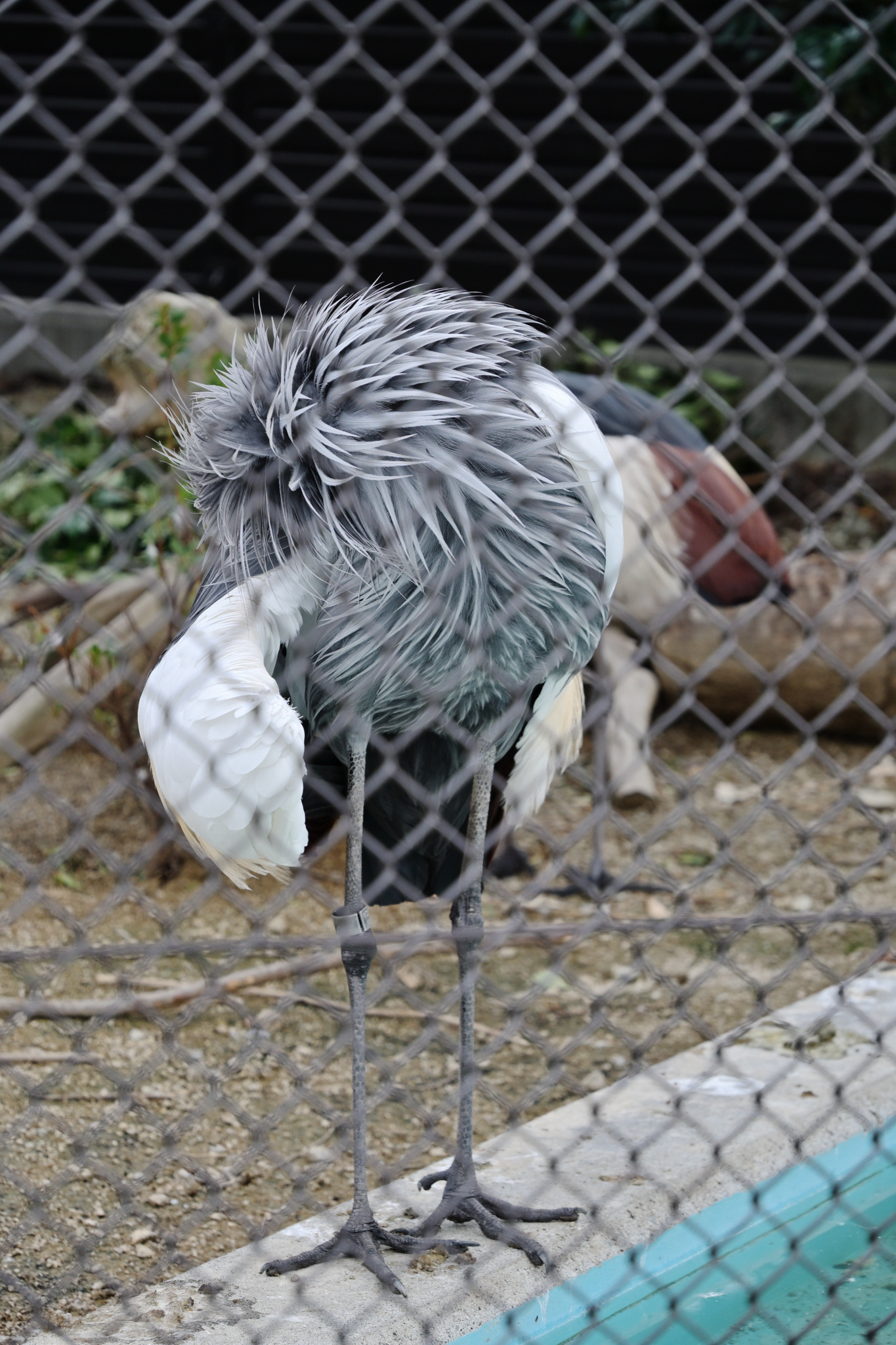 ツル舎の中で、一際目立つ容姿をされていたので、思わずシャッターチャンスを待って撮った写真です。ただ、手前の金網が邪魔してオートフォーカスで撮るのは難しく、マニュアル撮影で苦労しました。^^;
