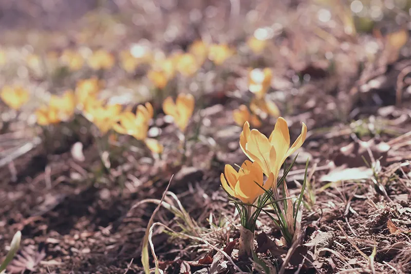 クロッカスが咲き始めます。光に透ける様子が綺麗で、バリアングル液晶モニターを活用して撮影。