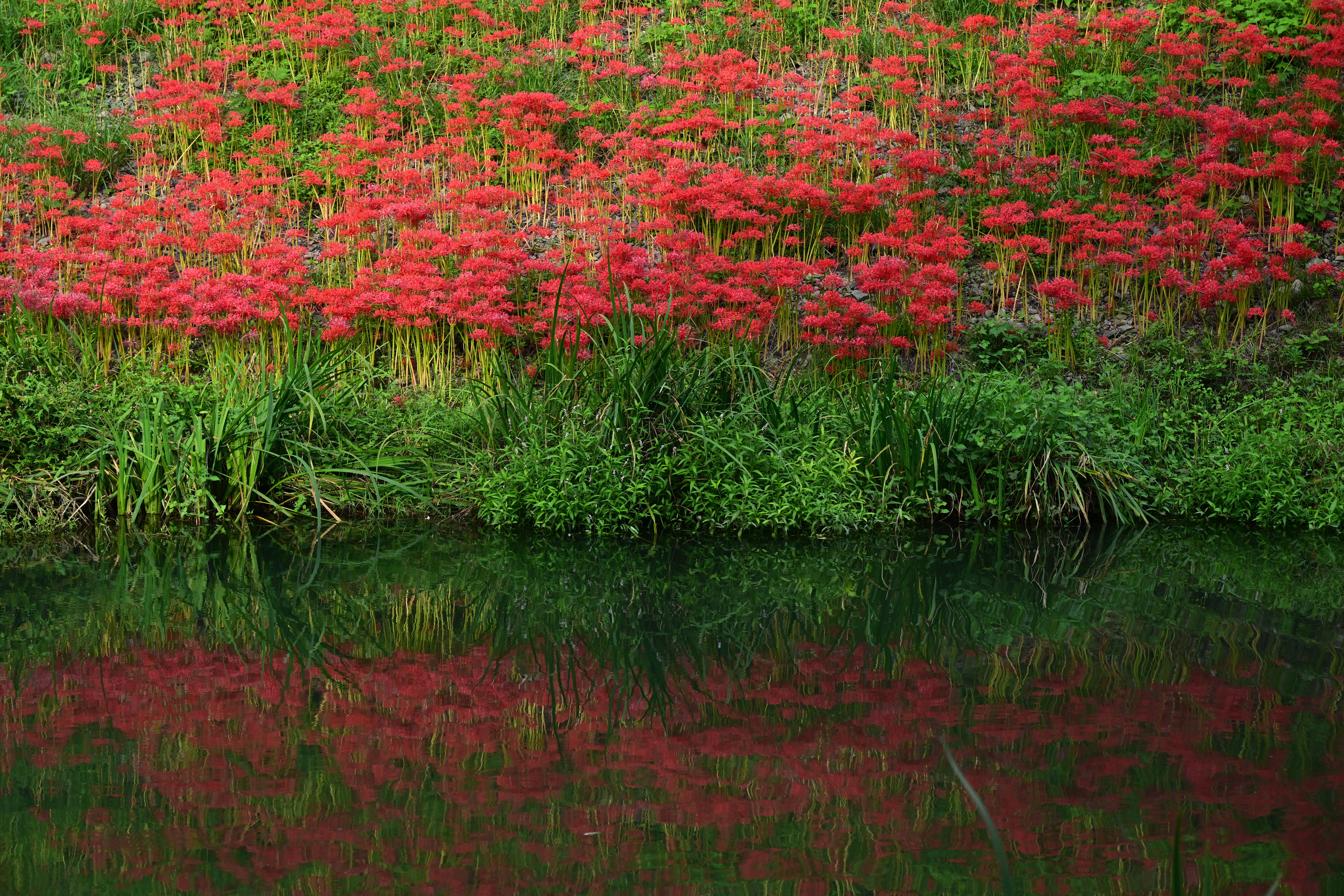 投稿を表示川の土手にこんなに沢山の彼岸花が群生しているのですね~。川面に映った姿も美しく、とっても素敵な光景です。お見事です。^^