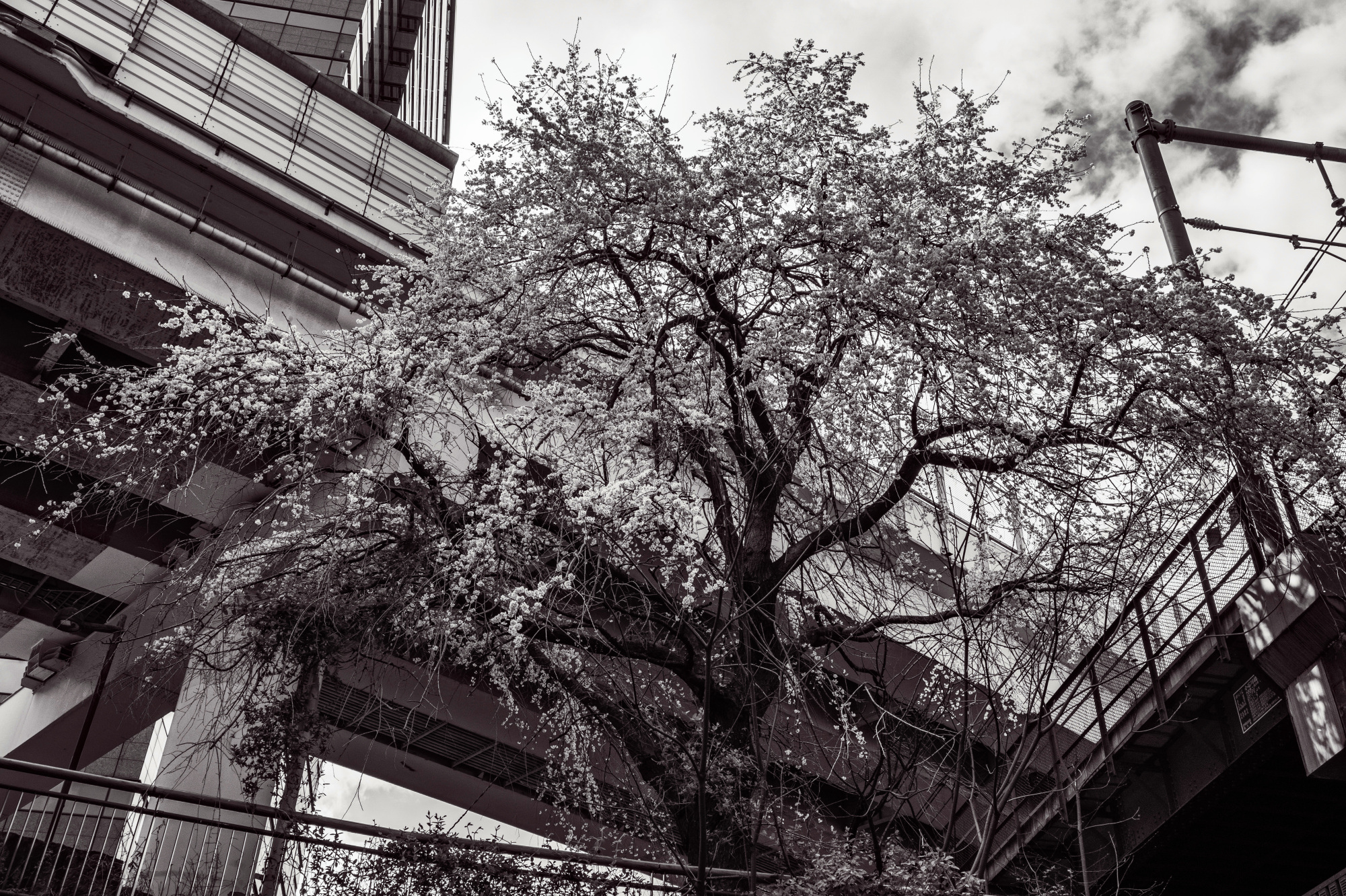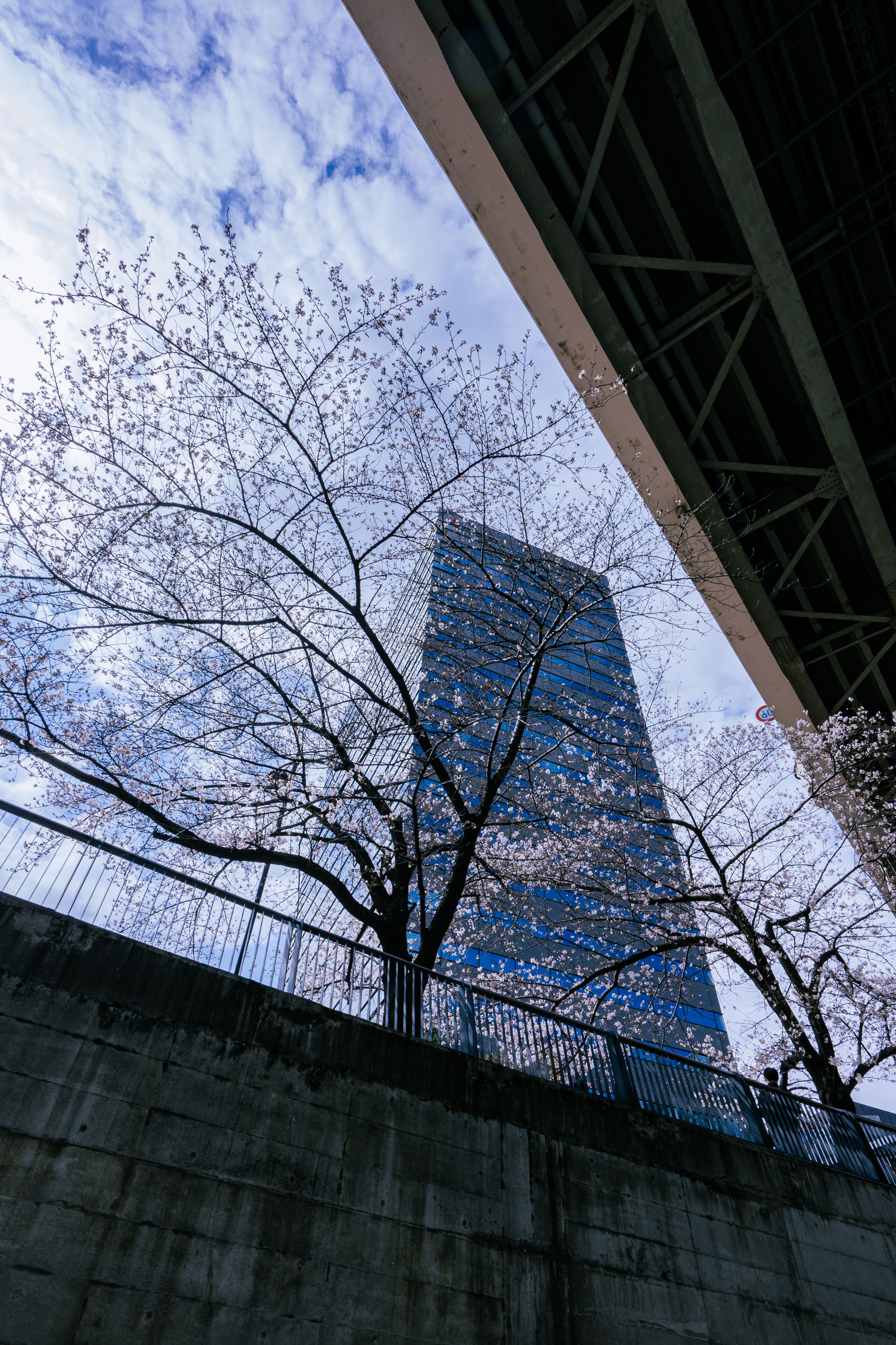③スキマから見上げると都心の桜が🌸