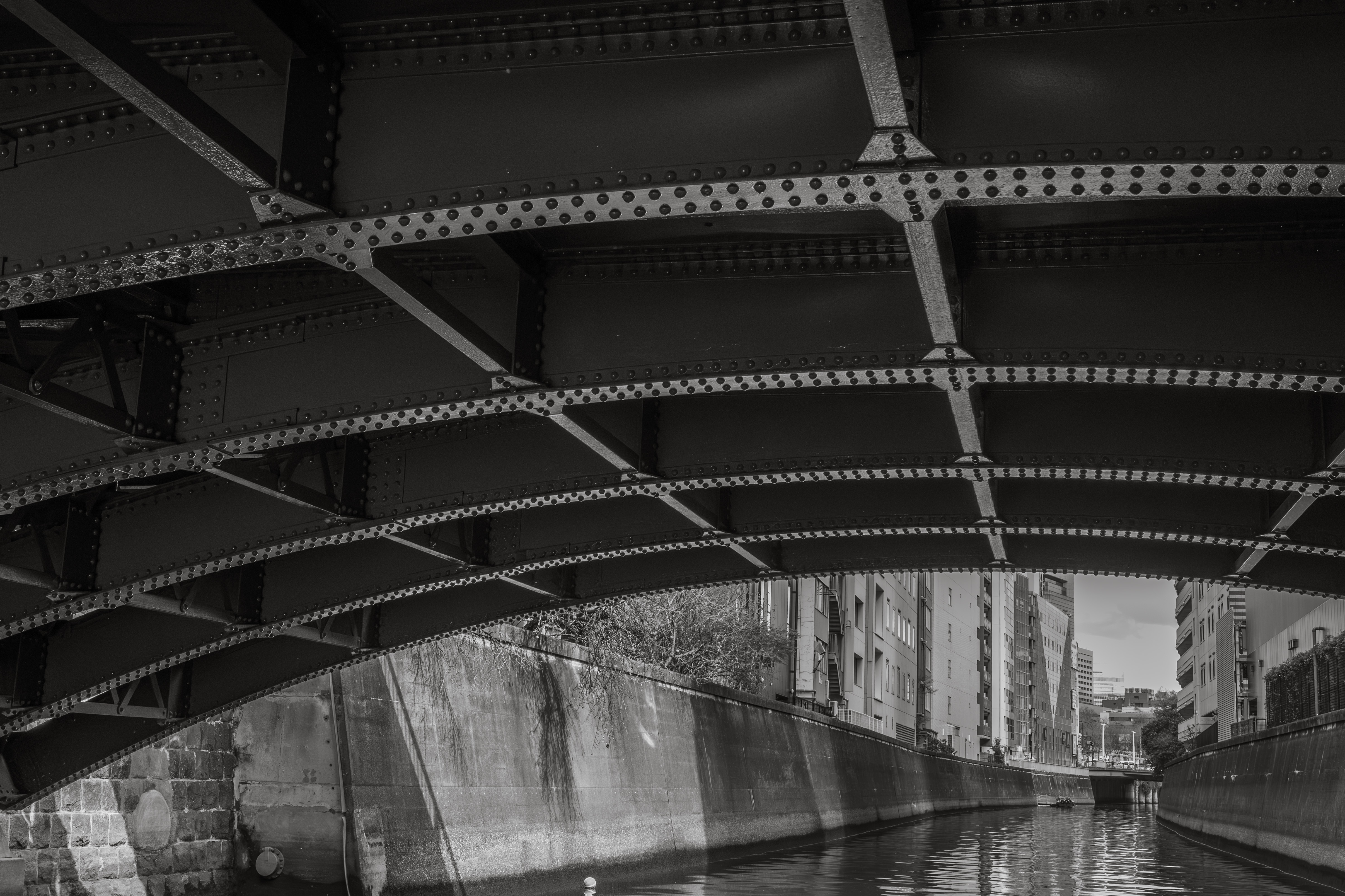 ④神田川に入って、水道橋を潜り抜けると空が遠い。。