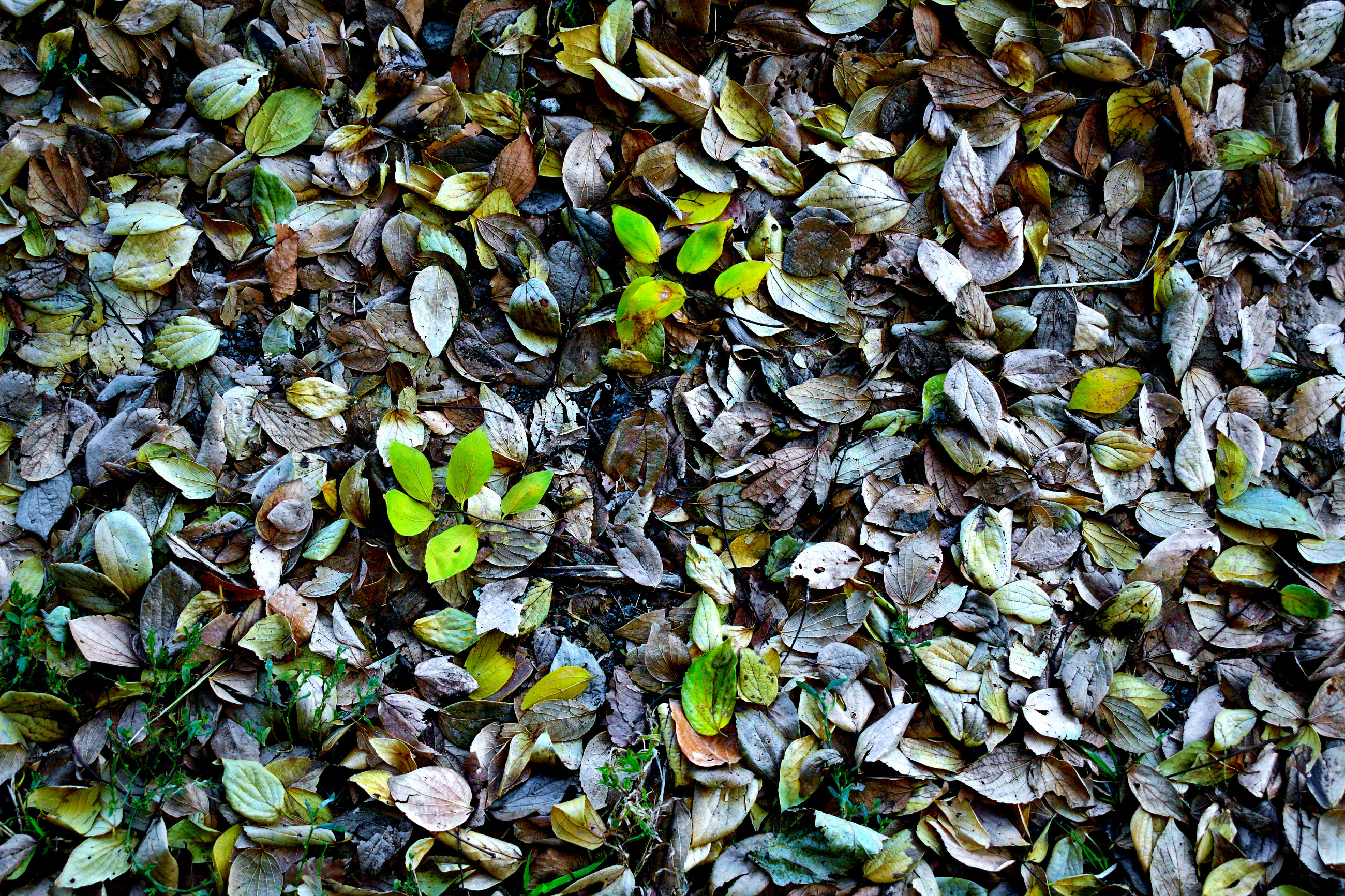 青みを帯びた枯葉が、紅葉の落ち葉とは違う落ち着きと湿度を感じさせて美しいと思います。