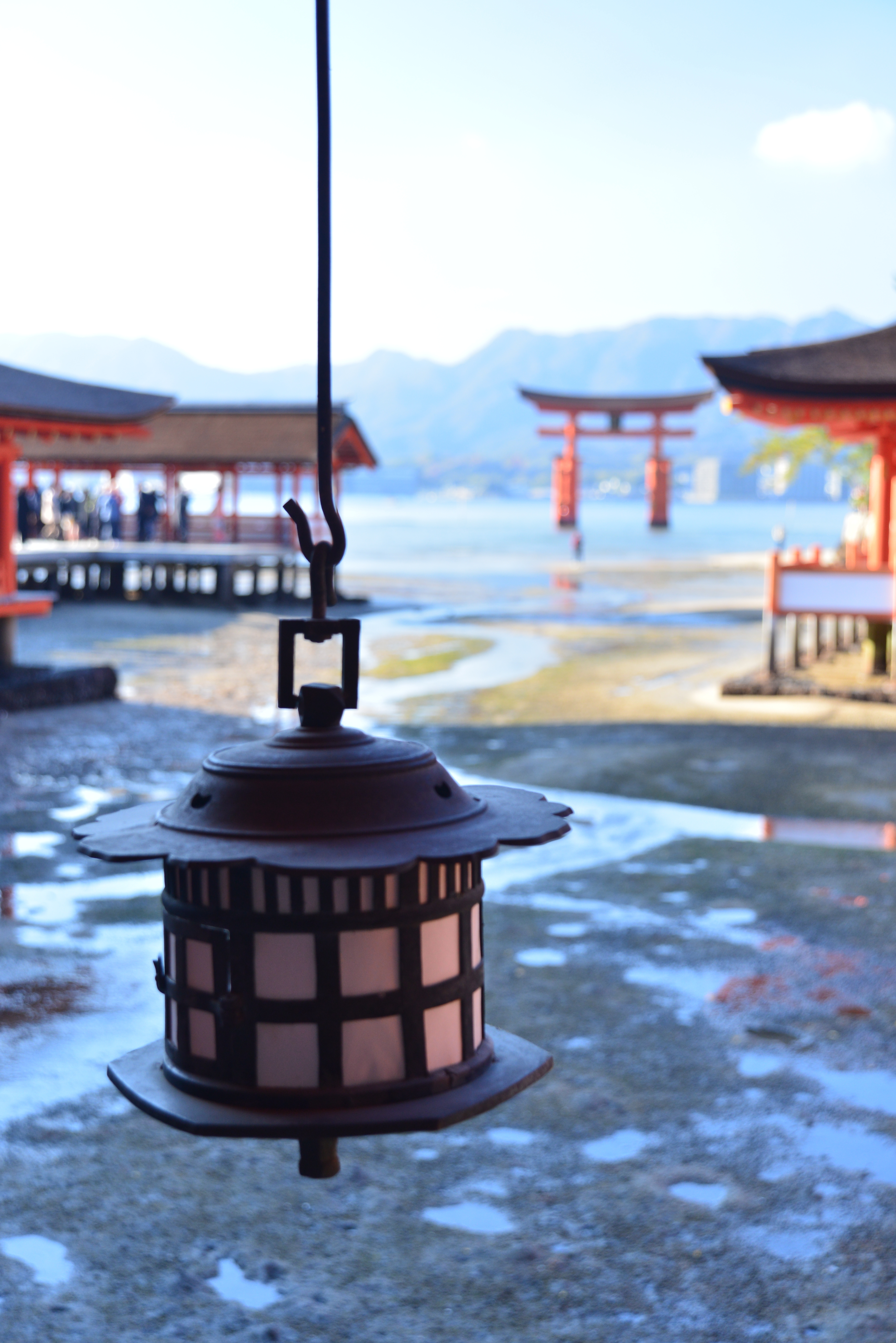 厳島神社の境内から捉えた鳥居、映り込む人影。。