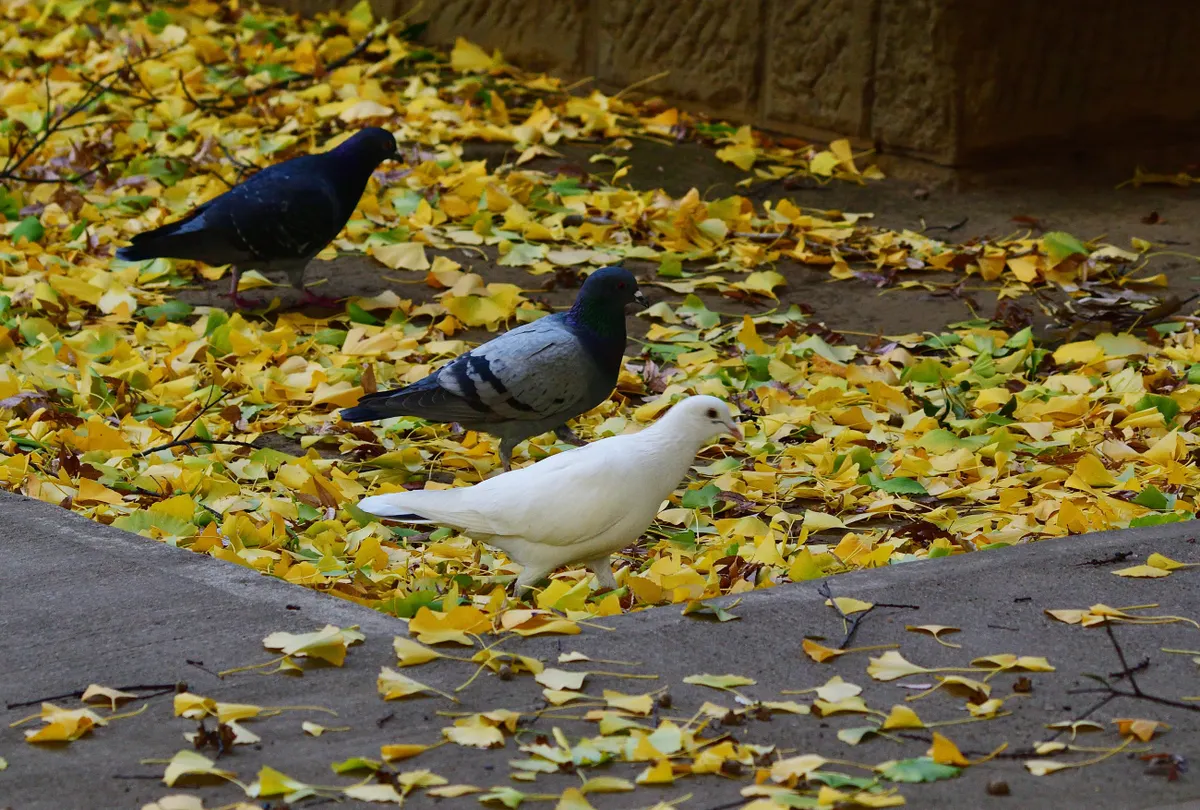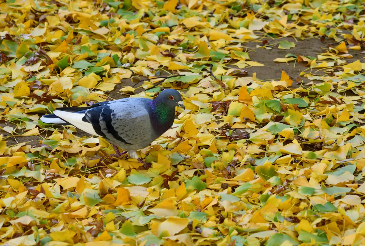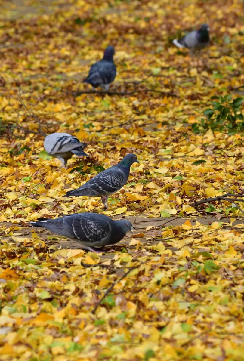 茅ヶ崎市、鶴嶺神社のハトさんたちです。お社の上や銀杏の絨毯の上でくつろいだり食事をしたり、秋を満喫している様です。^^