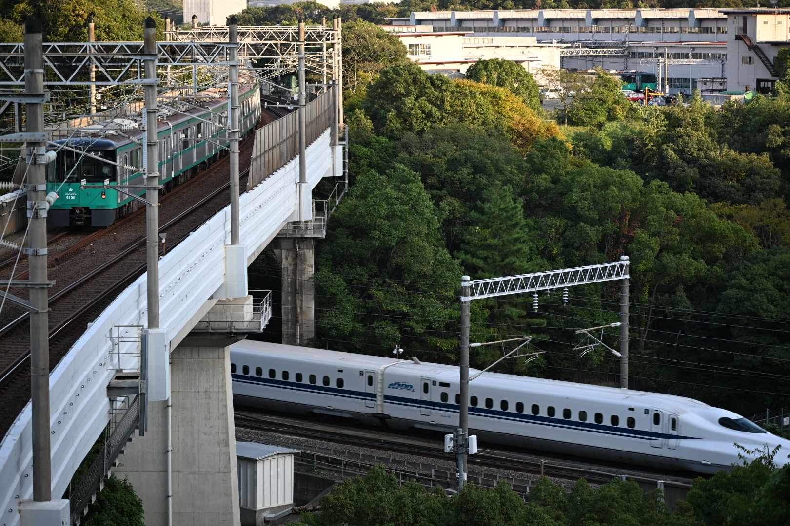 トップ > メンバーズ・フォト > 乗り物(鉄道、飛行機など) > 交差 ようちゅこ 2025/10/27 23:27 交差 市営地下鉄と山陽新幹線が交わっていて、両車両が一つの場面内に収まる場所に、初めて行ってみました。しかもこの場所では、高架を走っているのが地下鉄線で、新幹線がその下をくぐって走っています。 いいね 共有する 共有する X facebook LINE リンクをコピー コメントする 0 件の返信 (新着順)