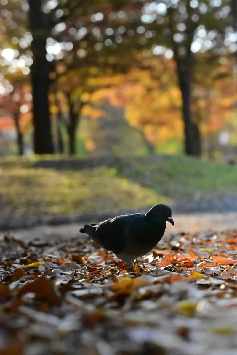 大分乗り遅れたテーマですが・・紅葉の中、ハトを撮影していたら、そういえばハトさんチャレンジがあったと思い出しました😊