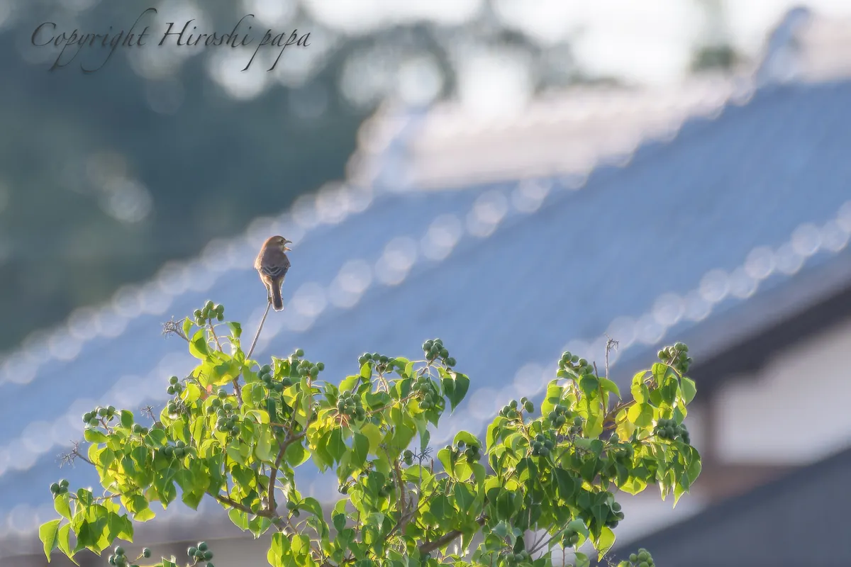投稿を表示モズが口を開けて鳴いていますね。甲高い声が聞こえて来そうです。こんなに小さくとも猛禽類ですから、頼もしい小鳥ですね。