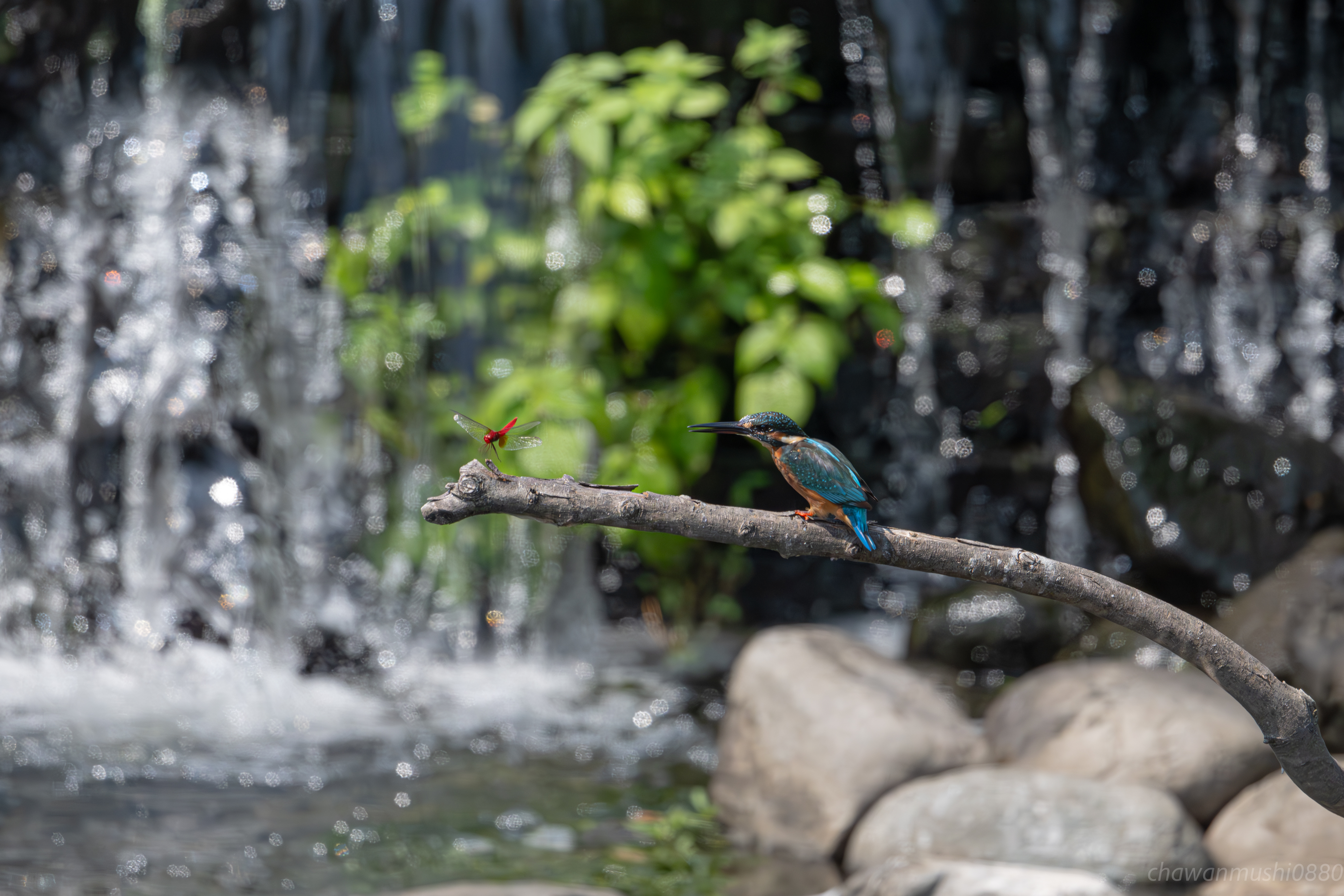 投稿を表示カワセミとトンボのにらめっこ、微笑ましいですね。