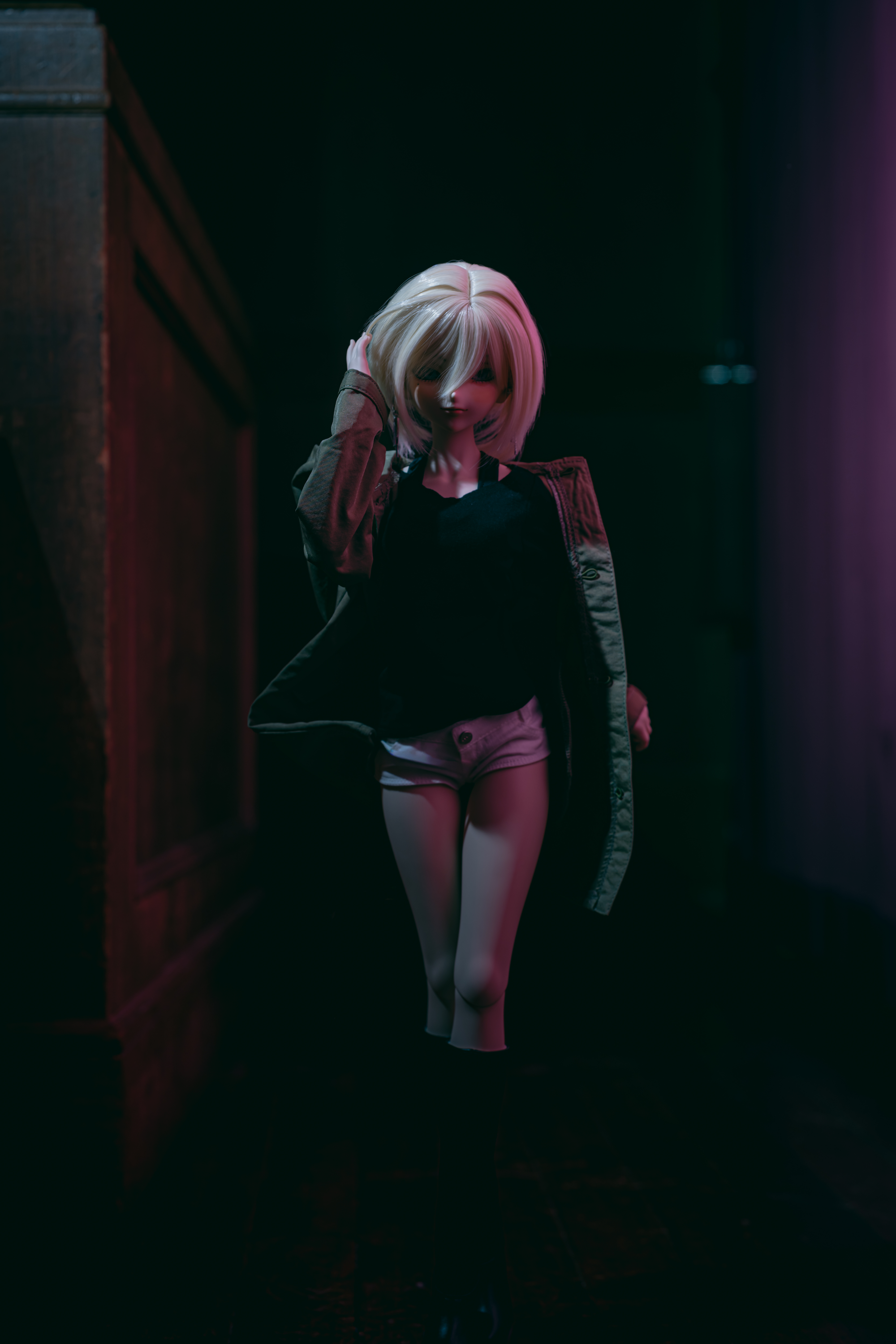 トップ > メンバーズ・フォト > その他 > ドール⑮ かぐぺろ 2025/12/08 22:27 ドール⑮ ⑭と同じ場所、同じポージングでライティングだけ変えて撮影。 ⑭は逆光1灯でしたが、今回はドールの頭上を横切る格好で左から右の緞帳に向けてストロボを照射しています。 緞帳で跳ね返った光は赤くなるので全体的に赤みがかった画になりました。 …これはただのホラー写真なのでは…? いいね 共有する 共有する X facebook LINE リンクをコピー コメントする 1 件の返信 (新着順) ミュートしたユーザーの投稿です。 投稿を表示 yumem 2025/12/09 09:16 ホラー写真というより、私にはヒーローショットって感じに見えます。^^ 手のポージングや脚線の決め方、暗めの背景とのバランスとか痺れます。 いいね 返信する