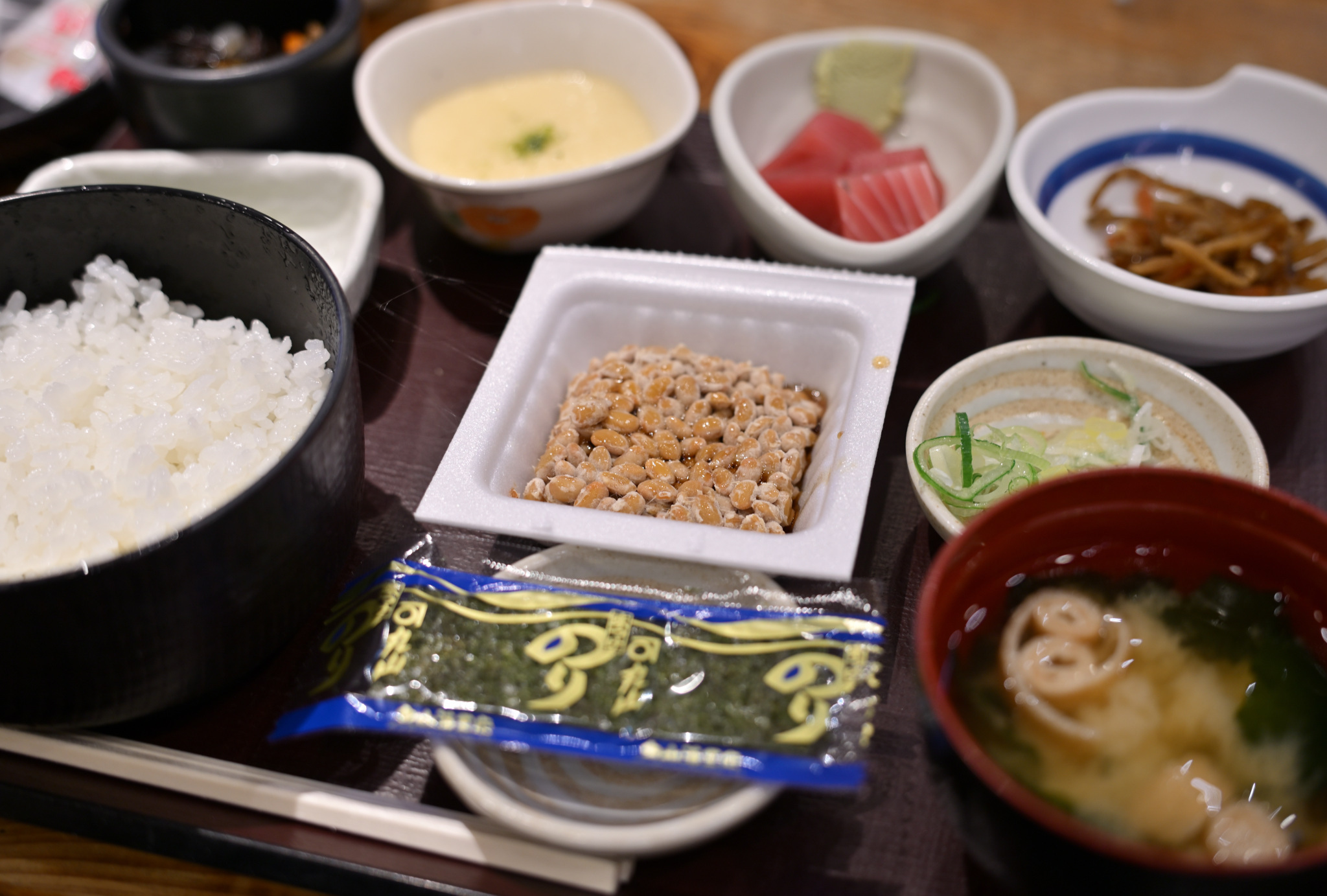 長丁場なので、朝からしっかり栄養補給「納豆定食」をいただきました。