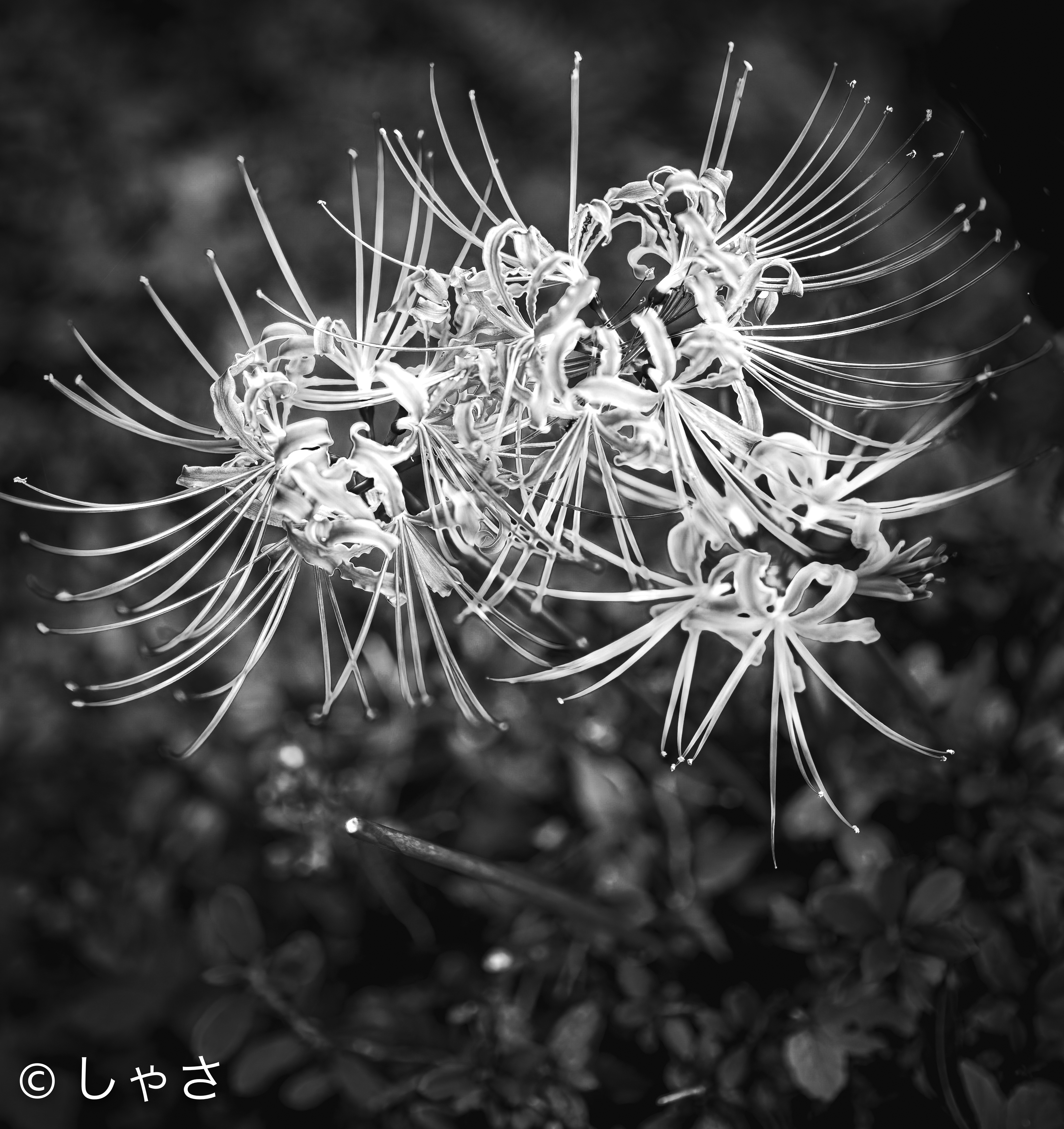 投稿を表示彼岸花の赤色は、ディープトーンモノクロームやモノクロ・赤フィルタで明るい色に表現するとカラーとは違った単純な美さと違う花の存在感を見せてくれますね。私も投稿してみましたが、味わいのある作品になりますね。そんな作品のタイトルをどう付けるかが作品の評価に大きく影響する表現方法の様に感じました。本作は蕊が美しく伸びて素敵な作品ですね。^^