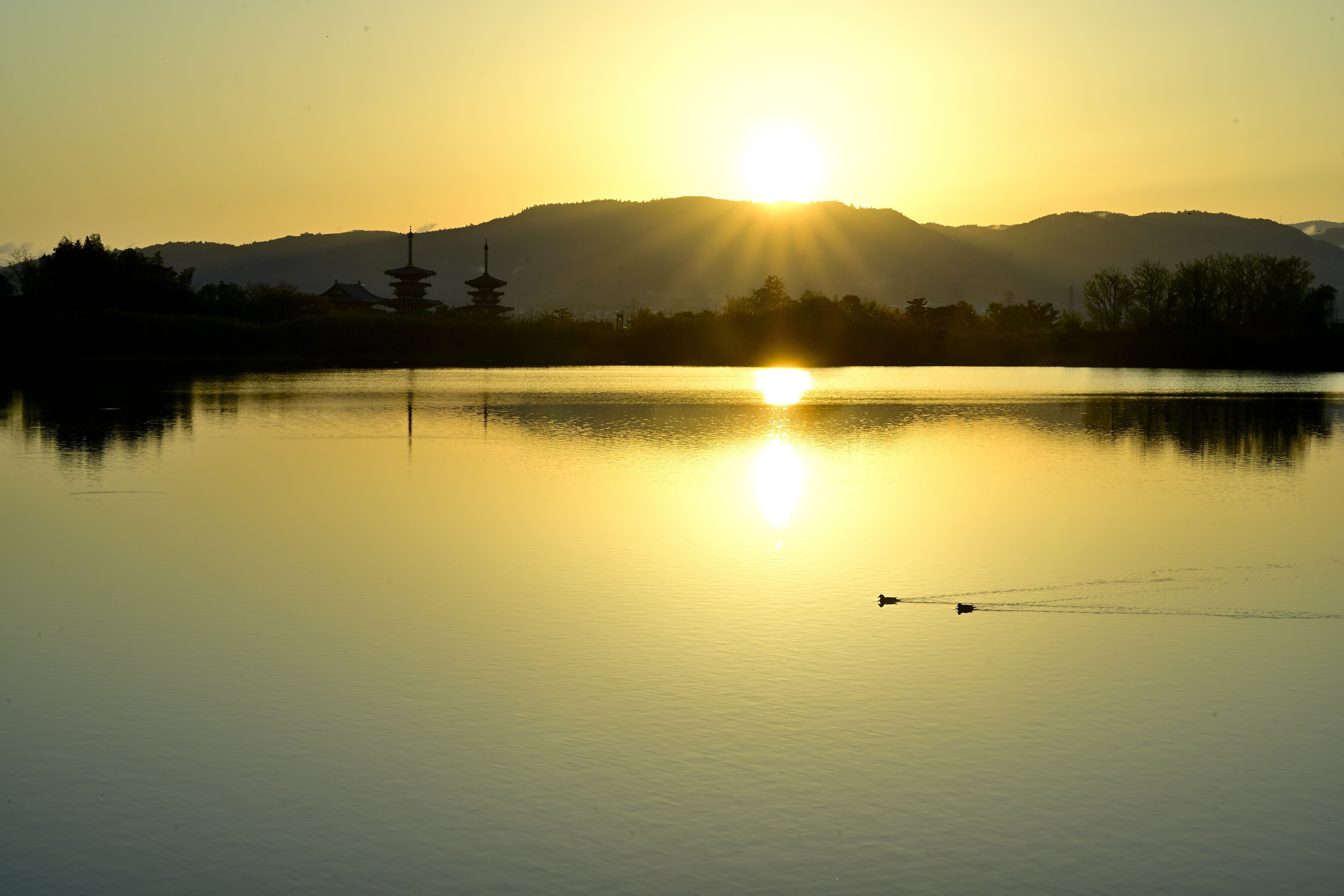 投稿を表示朝日に照らされた池に二羽の水鳥が泳ぎ、平和な一日の幕開けの撮影ですね。いい一日の始まりです。