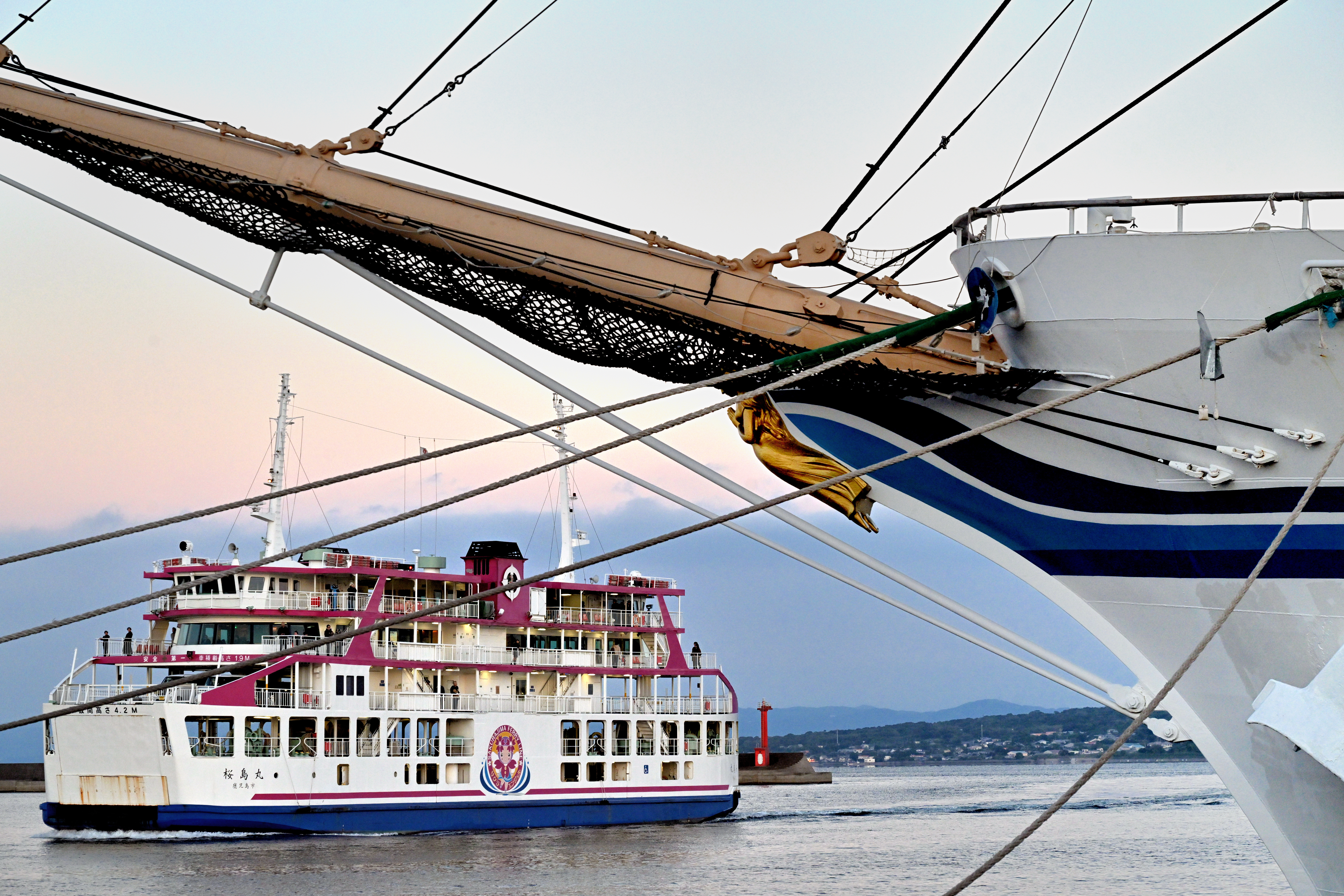 トップ > メンバーズ・フォト > 乗り物(鉄道、飛行機など) > 桜島フェリーと日本丸 s-p-i 2026/01/06 18:54 桜島フェリーと日本丸 鹿児島本港に停泊中の帆船「日本丸」の近くを航行する鹿児島の桜島フェリーです。 Nikon Z9 NIKKOR Z 24~120mm f/4 S1/160 f/8 ISO1000 桜島フェリー 日本丸 いいね 共有する 共有する X facebook LINE リンクをコピー コメントする 0 件の返信 (新着順)