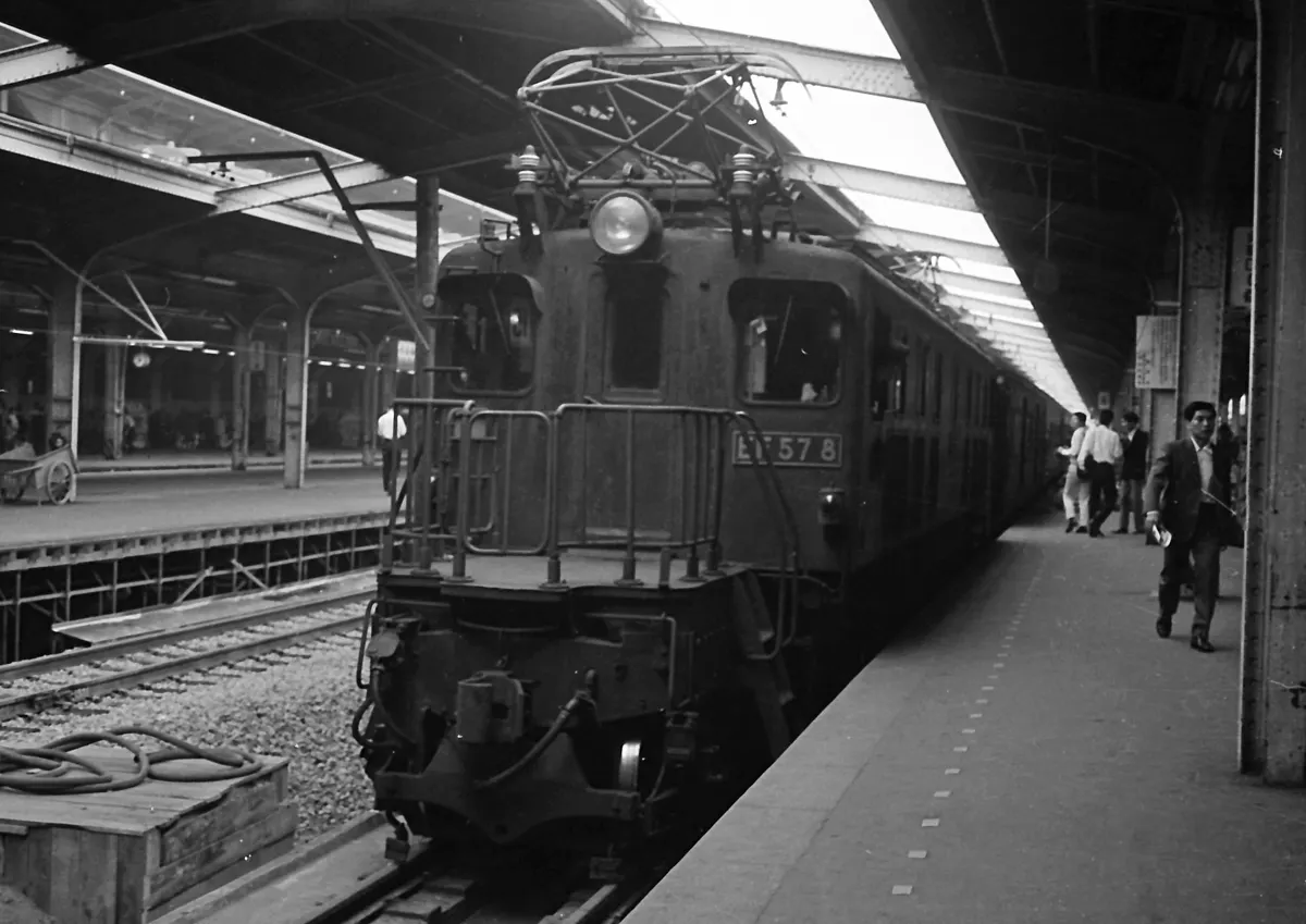 7枚目は長距離の急行・普通列車の茶色い旧型客車を牽いていた無骨な電気機関車。