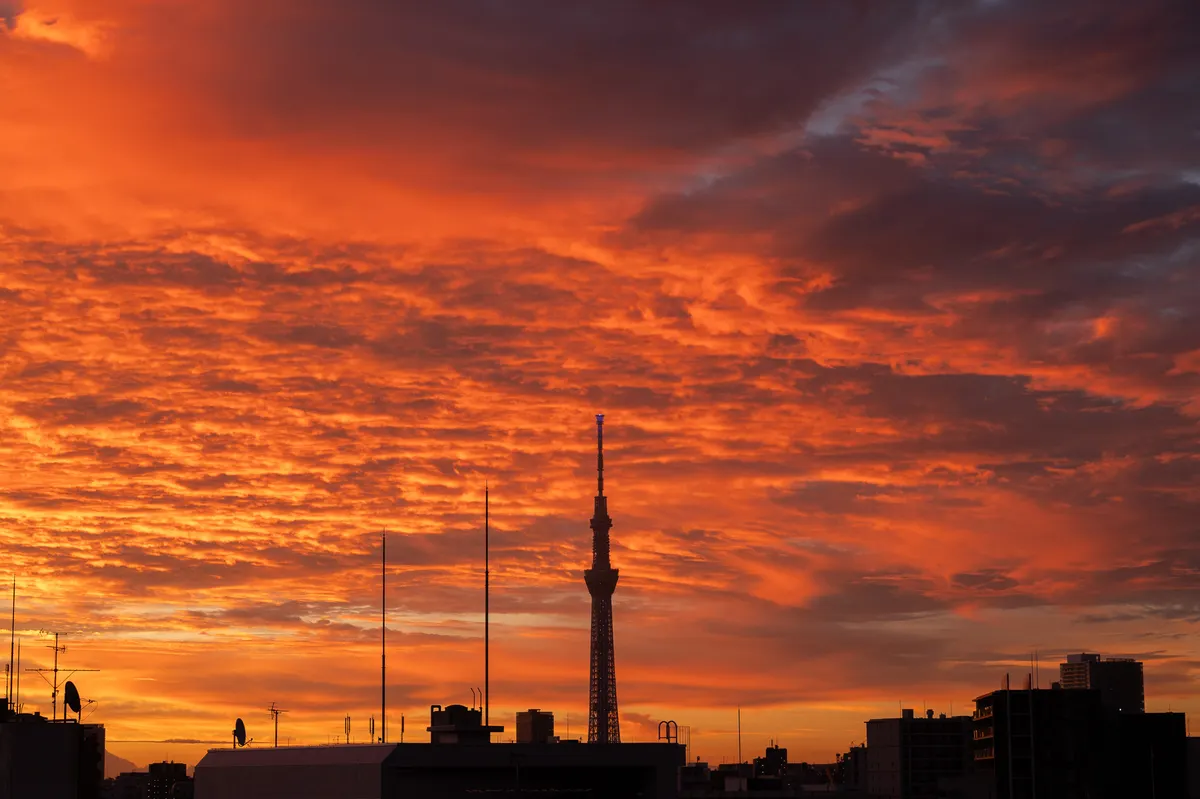 投稿を表示朝焼けは雨が降ると田舎では嫌がりますが、これは立派な色合いですね。世界の都市、東京の空をこがす赤です。素晴らしい。