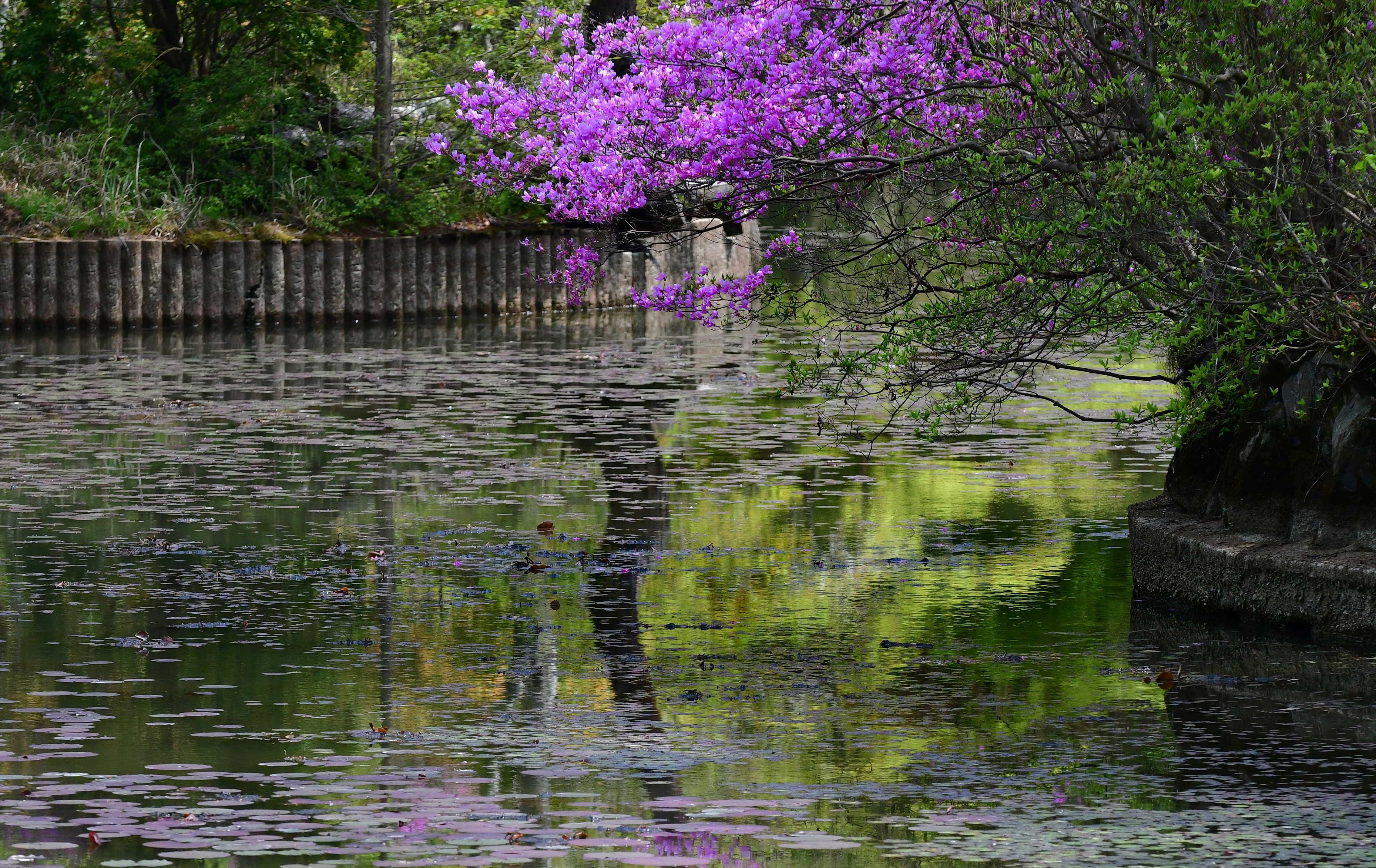 投稿を表示水面に反射した萌黄色の若葉とツツジの色がよく合いますね。^^