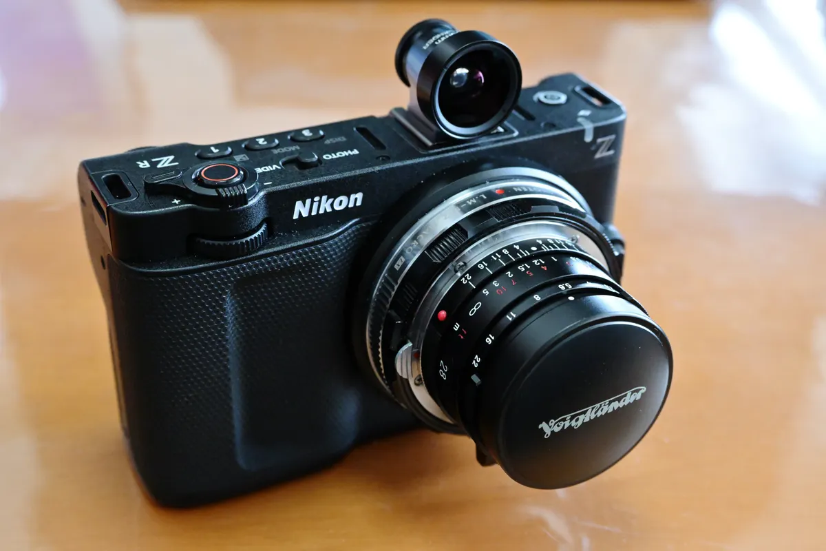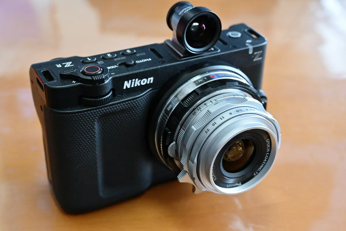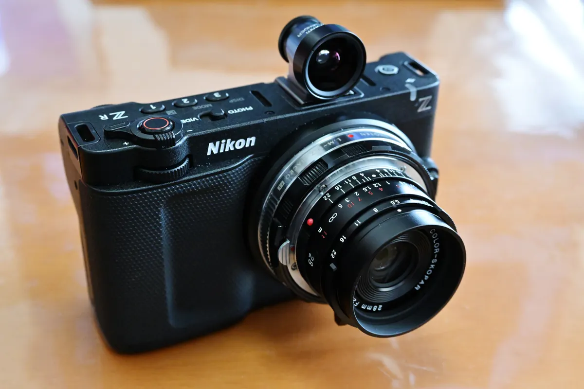 Nikon ZRにはファインダーが無いので、雰囲気作りのため、光学ファインダー「COSINA 21/25mm Viewfinder M」を付けています。